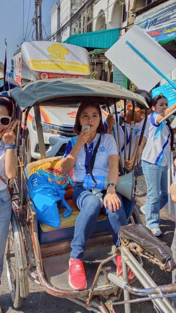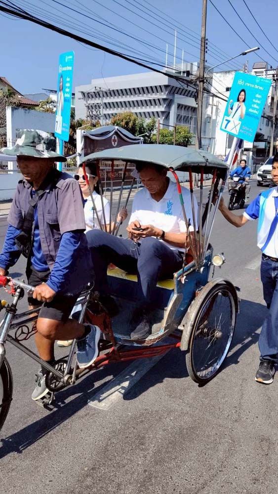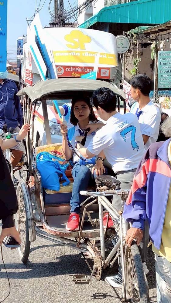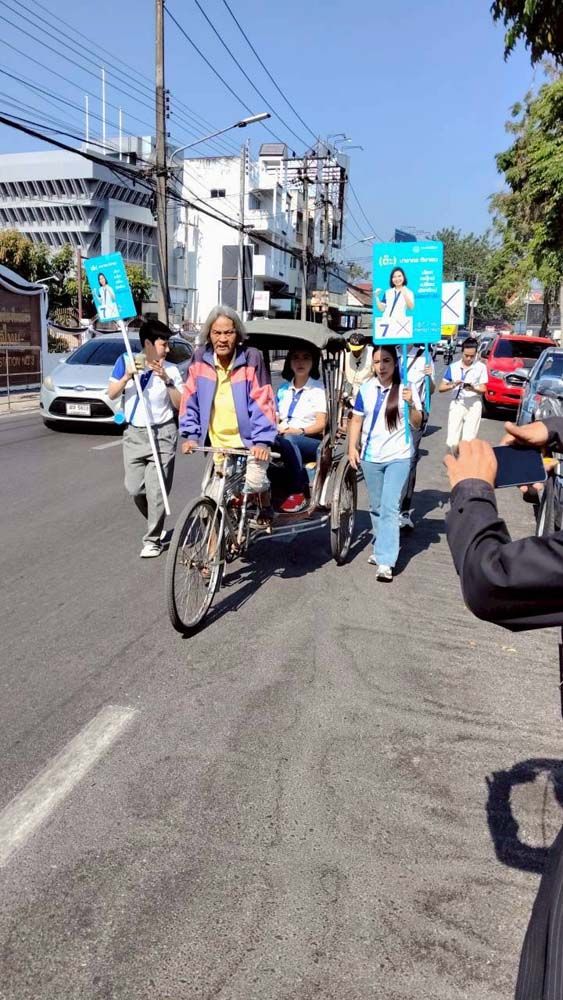 ระหว่างทางมีคนขี่รถสามล้อถีบเข้ามาทักทายบอกเล่าปัญหาการทำมาหากินว่าลูกค้าน้อยลงมาก อยากให้ช่วยผลักดันอาชีพถีบสามล้อให้เป็นเอกลักษณ์การท่องเที่ยวของเชียงใหม่