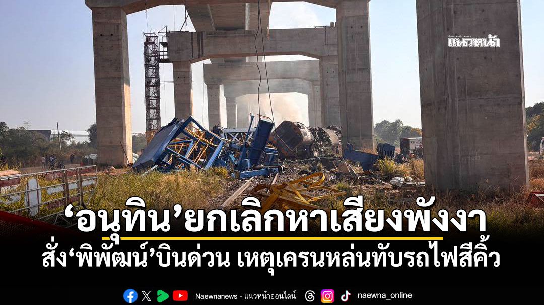 "อนุทิน"ยกเลิกหาเสียงพังงา สั่ง"พิพัฒน์"บินด่วน บัญชาการเหตุการณ์ เครนหล่นทับรถไฟสีคิ้ว เร่งเยียวยาผู้บาดเจ็บ-ผู้เสียชีวิต แนะ รฟท.แจ้งความดำเนินคดีผู้รับเหมา ขณะที่"พิพัฒน์"สั่งอธิบดีกรมราง-รักษาการผู้ว่าฯรฟท.เร่งลงพื้นที่เหตุเครนถล่มทับรถไฟสีคิ้ว พร้อมประสานกระทรวงแรงงาน ใช้เงินประกันสังคมเยียวยา