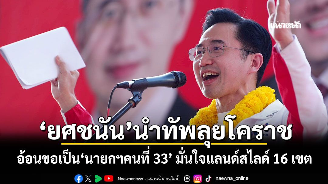 "ยศชนัน"นำทัพลุยโคราช อ้อนขอเป็น"นายกฯคนที่ 33" มั่นใจแลนด์สไลด์ 16 เขต เมินผลโพลไม่รับเป็นอันดับ 3 ลั่นเพื่อำทยเป็นที่ 1 มาตลอด