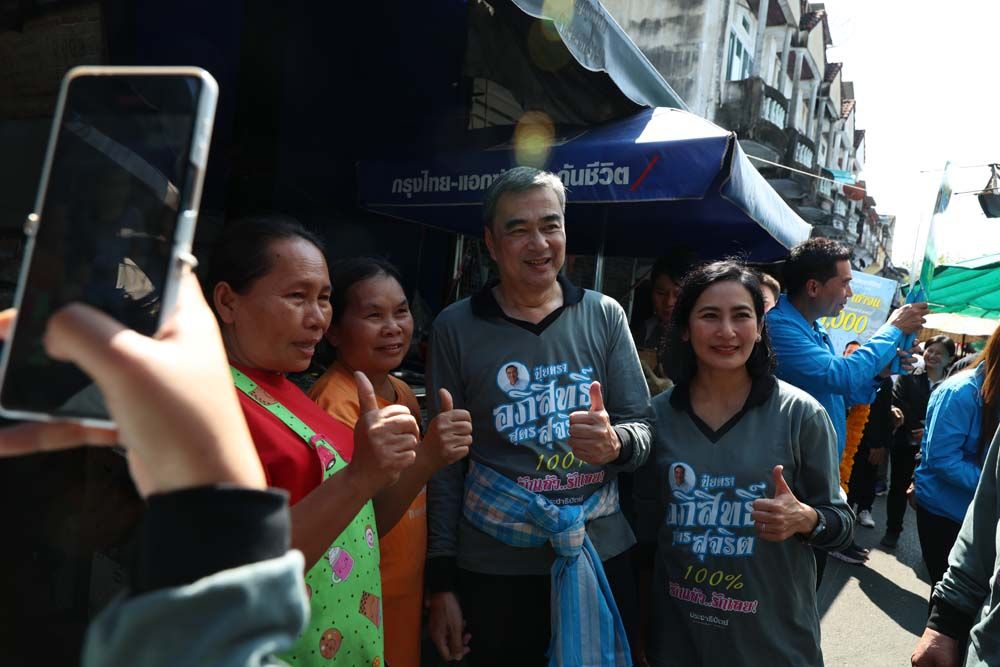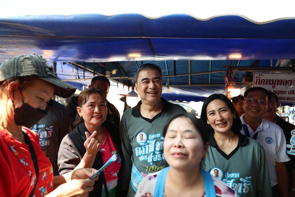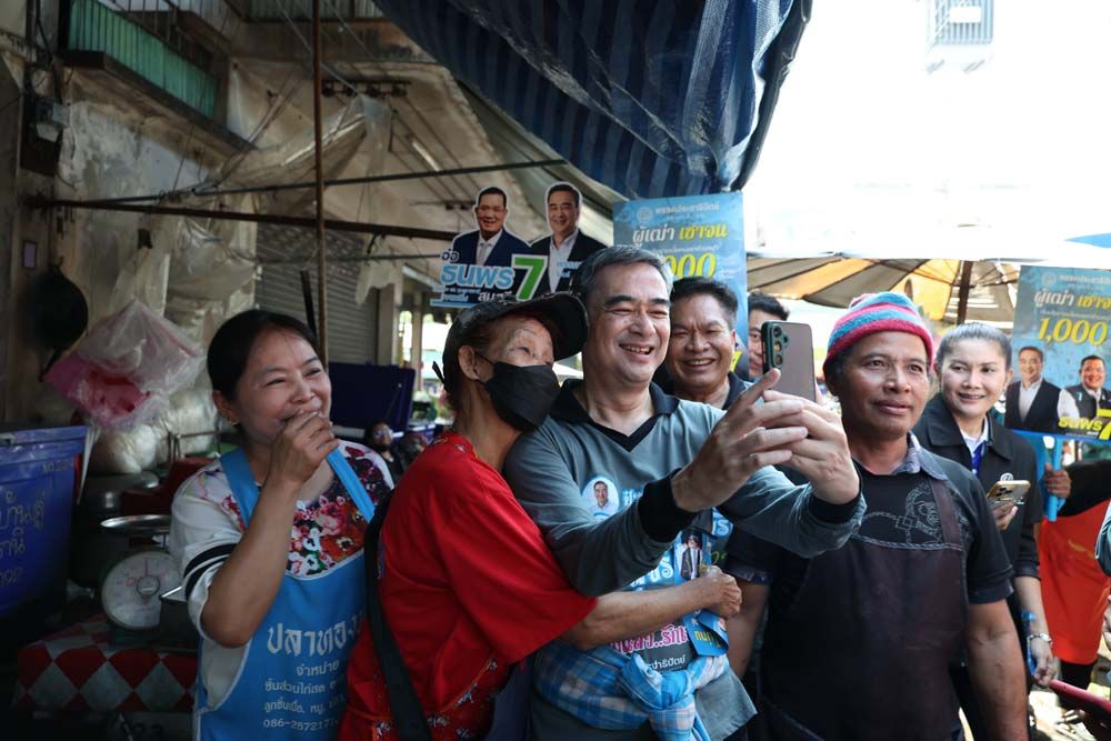 ซึ่งบรรยากาศแม่ค้าในตลาด ต่างแสดงความดีใจ บางรายถึงกับกล่าวว่า "มาแล้ว นายกฯ ในดวงใจ" พร้อมส่งเสียงเชียร์และขอจับมือให้กำลังใจ รวมถึงยังมีกลุ่มสตรีและนักศึกษา เข้ามาขอร่วมถ่ายรูปด้วยความตื่นเต้น โดยหลายคนชื่นชมในความสุภาพ และบุคลิกดูดีไม่เปลี่ยนแปลง พร้อมถามไถ่ถึง "นายชวน หลีกภัย" อดีตหัวหน้าพรรคฯ ด้วยความคิดถึงด้วย