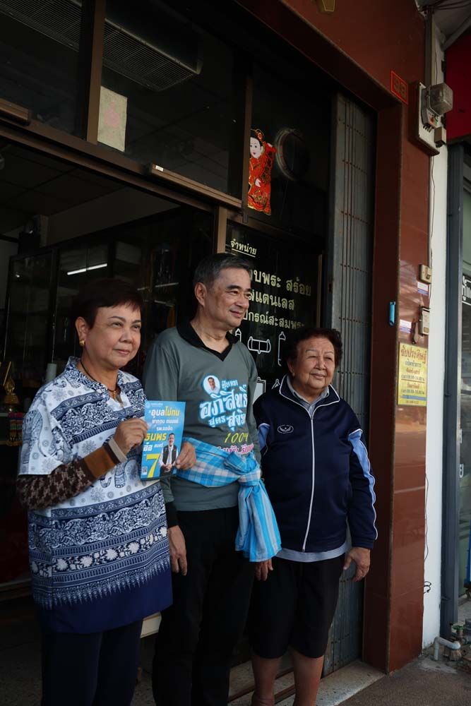 จากนั้นนายอภิสิทธิ์ ได้พบปะพี่น้องประชาชนและรับฟังปัญหาในพื้นที่ โดยได้รับการต้อนรับอย่างอบอุ่นและเป็นกันเอง โดยก่อนออกหาเสียงได้แวะกราบขอพรสิ่งศักดิ์สิทธิ์และรับพลังบุญ