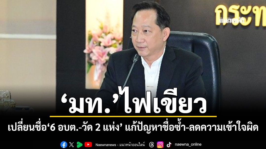 "มท."ไฟเขียว เปลี่ยนชื่อ"6 อบต.-วัด 2 แห่ง" แก้ปัญหาชื่อซ้ำ-ลดความเข้าใจผิด ให้เหมาะสมกับอัตลักษณ์ประวัติศาสตร์ของพื้นที่