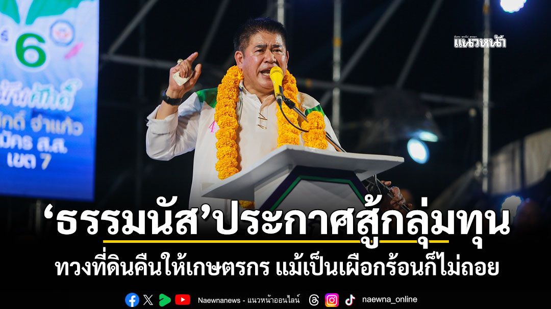 "กล้าธรรม"เปิดเวทีใหญ่กลางสุราษฎร์ธานี "ธรรมนัส"ประกาศสู้กลุ่มทุน ทวงที่ดินคืนให้เกษตรกร แม้เป็นเผือกร้อนก็ไม่ถอย เหมือนบางพรรคที่ยุบสภาฯหนี พร้อมชู"อาจารย์แหม่ม"มือเศรษฐกิจตัวจริง วางระบบการเงินการคลัง ปฏิรูปธนาคารเพื่อประชาชน