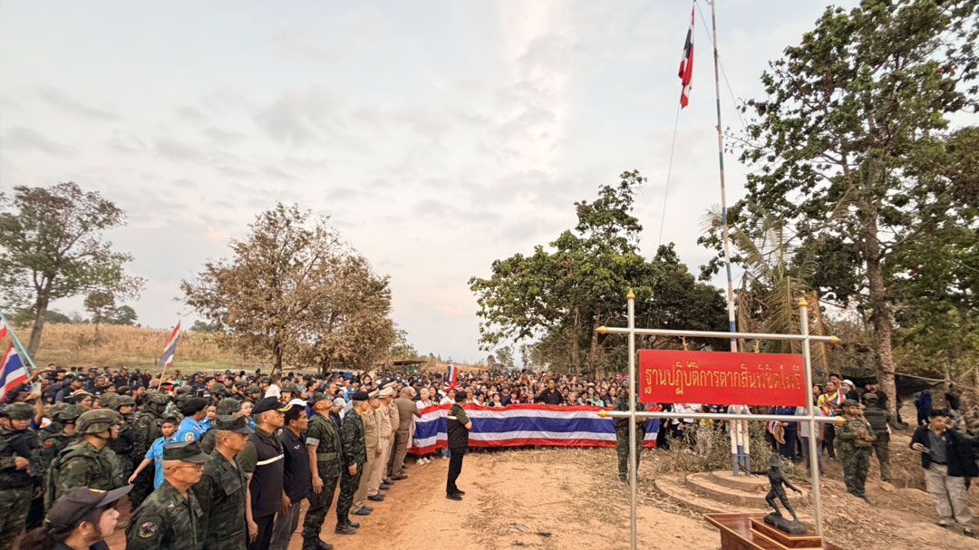 สมรภูมิบ้านสามหลังเดือดด้วยพลังศรัทธา ชาวตราดกว่า 500 คน แห่เดินเท้าขึ้นเขาชูธงชาติไทยบุกฐานปฏิบัติการตากสินพิชิตไพรี ร้องเพลงชาติไทยดังก้อง “บ้านสามหลัง” หลังทหารยึดคืนจากกัมพูชาได้สำเร็จในรอบ 40 ปี “บิ๊กเล็ก”สั่งตรึงกำลังเข้ม 1 ปี กางแผน 5 มาตรการกันรุกรานถาวร ชาวบ้านลั่น “ห้ามเปิดด่าน-ไม่ต้องง้อเขมร” จี้รัฐเด็ดขาดรักษาศักดิ์ศรีประเทศ