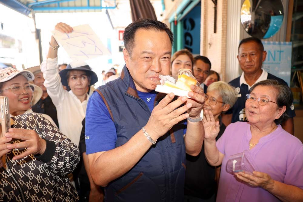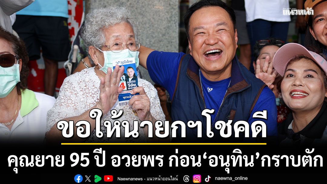 ‘อนุทิน’ ปิดท้ายหาเสียงชุมพร! เดินรอบตลาดกว่า 1 กม. แวะซื้อเสื้อ ‘อสม.’ใส่ ก่อนสักการะศาลหลักเมือง ปชช. มอบเหรียญ ‘พ่อท่านคล้าย’ ขอให้โชคดี ด้าน ‘คุณยาย 95 ปี’ อวยพรท่องเลข 4-37