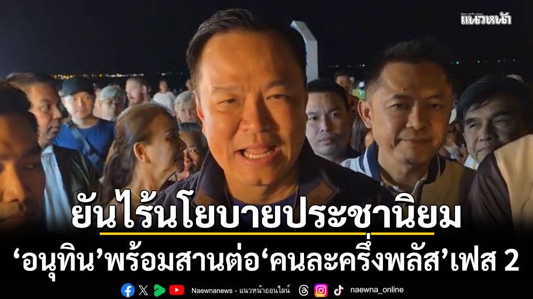 ‘อนุทิน’ ยันหาก ‘ภูมิใจไทย’ ได้กลับมาบริหารประเทศ ไม่มีนโยบายประชานิยม พร้อมลุยคนละครึ่งพลัสเฟส 2 เชื่อประชาชนพอใจ 50:50 อยู่แล้ว ไร้ 70:30 ชี้ผลโพลดูไว้เป็นกำลังใจ เน้นทำงานใกล้ชิดชาวบ้านมากกว่า แจง ‘แลนด์บริดจ์’ ต้องเดินหน้า เหตุสำคัญต่อการพัฒนาประเทศ มั่นใจทำพรรคเดียวได้ ลั่นพร้อมดีเบต แต่ไม่มีเวลาไปขัดแย้งบนเวทีกับใคร ปัดตอบคัดพรรคการเมืองร่วมรัฐบาล
