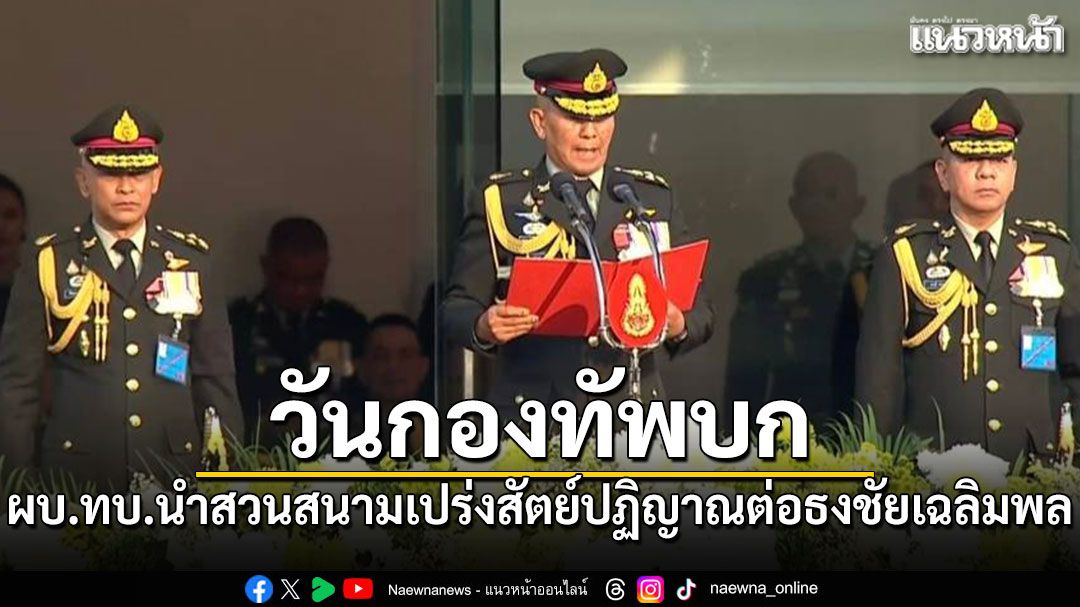 ผบ.ทบ. นำสวนสนาม วันกองทัพบก เปร่งคําสัตย์ปฏิญาณต่อหน้าธงชัยเฉลิมพล ย้ำความสําเร็จทุกภารกิจ ขึ้นอยู่กับทหารทุกนาย ล้วนขับเคลื่อน ปกป้อง ชาติ ศาสนาพระมหากษัตริย์ และประชาชน