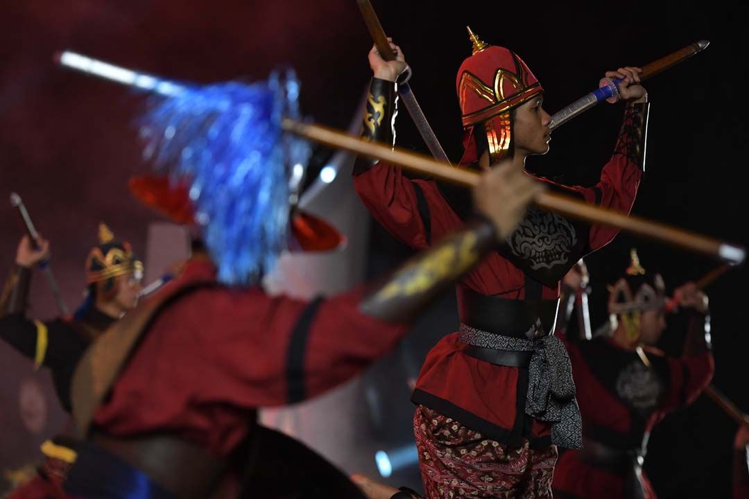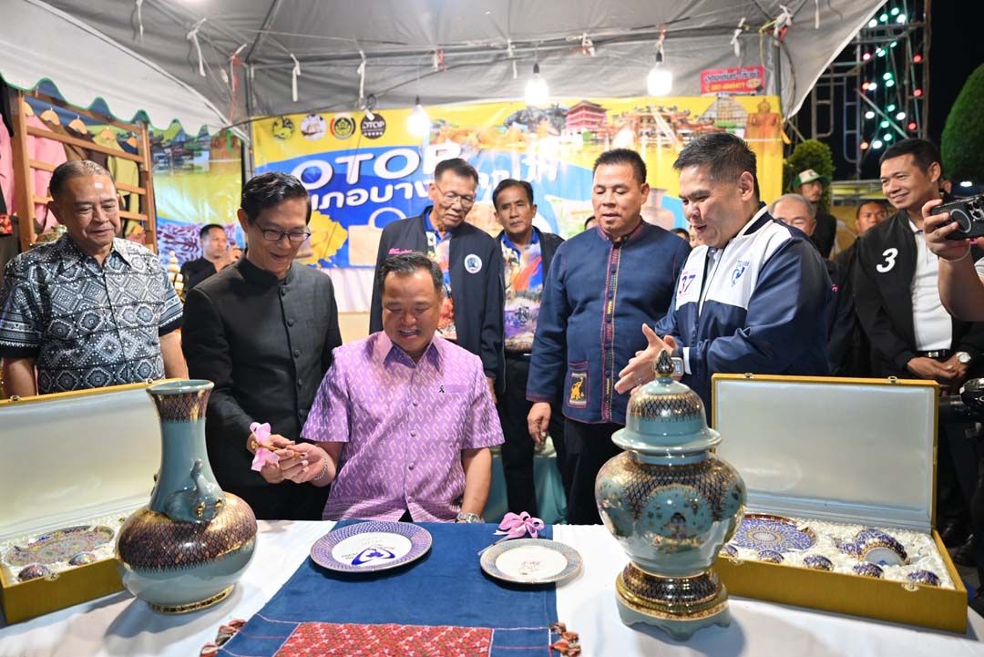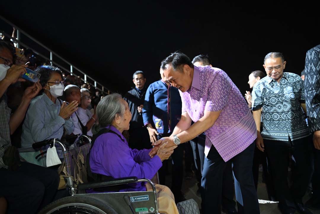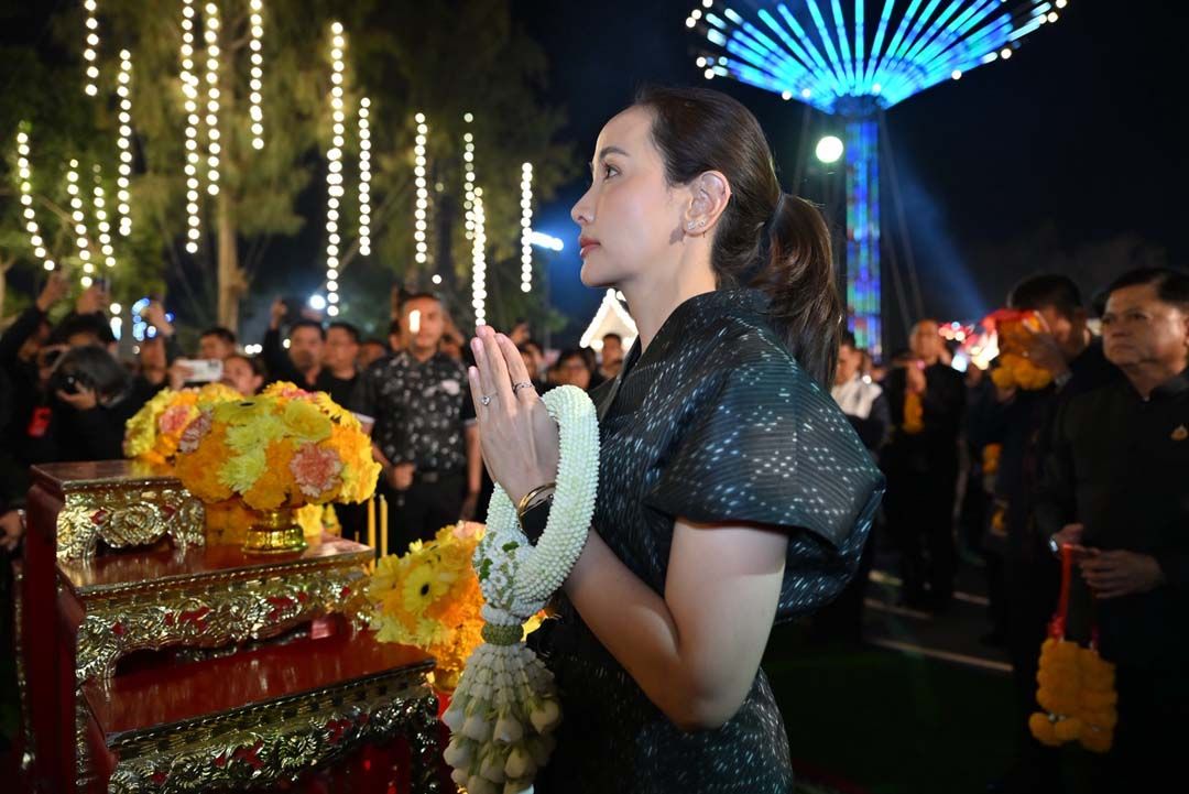 จากนั้น นายกรัฐมนตรีได้ประกอบพิธีเปิดงานด้วยการลั่นฆ้องชัย 3 ครั้ง เพื่อเป็นสัญลักษณ์ความเจริญก้าวหน้า เปิดงานอนุสรณ์ดอนเจดีย์ ครั้งที่ 67 ประจำปี 2569 อย่างเป็นทางการ ก่อนเยี่ยมชมร้านค้า OTOP และร้านธงฟ้า และเดินทางไปยังลานแสดงยุทธหัตถี เพื่อประกอบพิธีบวงสรวงก่อนการแสดงยุทธหัตถี โดยจุดธูปเทียนบูชาหน้าโต๊ะเครื่องบวงสรวง คล้องพวงมาลาที่พระบรมรูปสมเด็จพระนเรศวรมหาราช มอบพระมาลา พระแสงดาบและพระแสงทวนแก่นักแสดงยุทธหัตถี