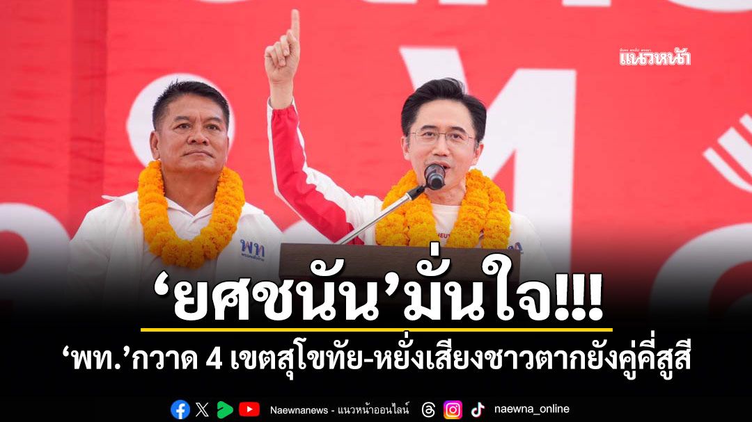 เมื่อวันที่ 20 มกราคม 2569 นายยศชนัน วงศ์สวัสดิ์ แคนดิเดตนายกรัฐมนตรีพรรคเพื่อไทย (พท.) นำทีมพรรคเพื่อไทย ลงพื้นที่ปราศรัยหาเสียง จ.สุโขทัย และ จ.ตาก โดยได้สักการะอนุสาวรีย์พ่อขุนรามคำแหง อ.เมือง จ. สุโขทัย หลังจากปราศรัยที่วิทยาลัยเกษตรกรรมสุโขทัย อ.สวรรคโลก และสักการะศาลสมเด็จพระเจ้าตากสินมหาราช อ.เมือง จ.ตาก ก่อนจะไปขึ้นเวทีปราศรัยที่ศาลสมเด็จพระเจ้าตากสินมหาราช