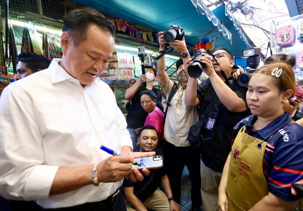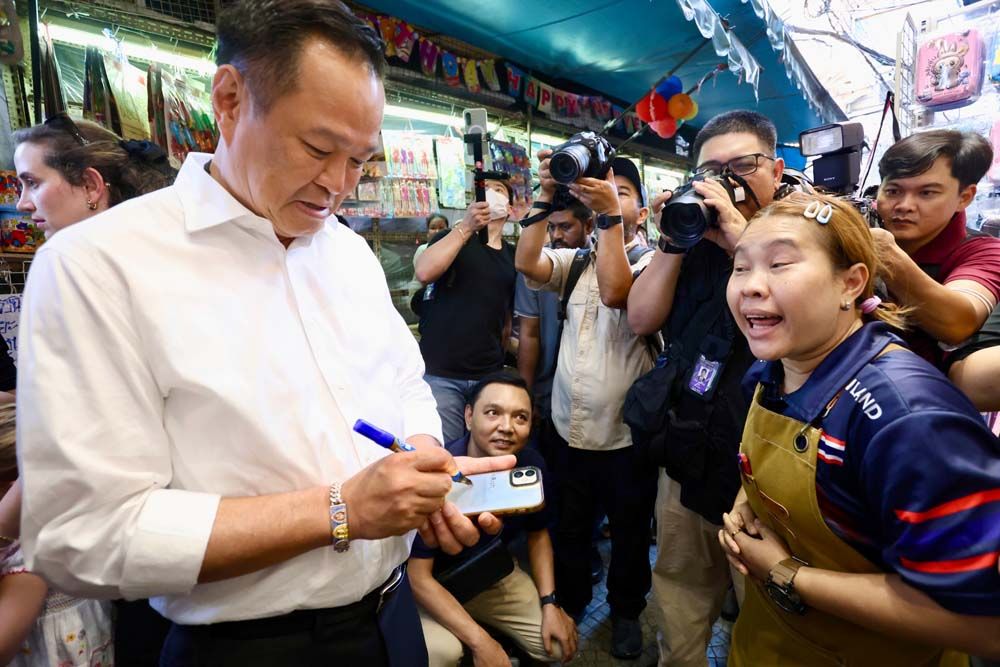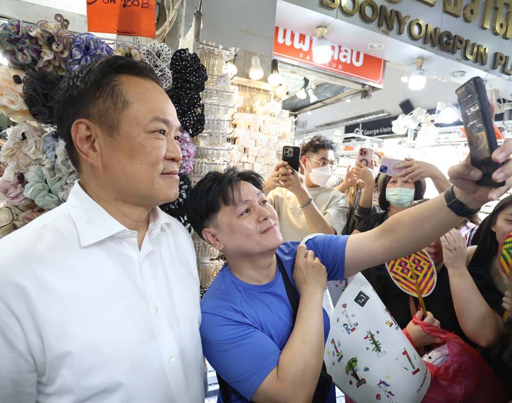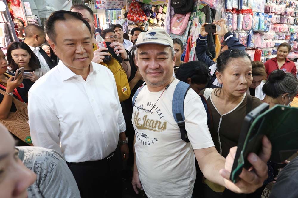 เมื่อเดินทางถึงประชาชนได้เข้ามาขอถ่ายภาพ พร้อมบอกว่า “เงียบมากเลยช่วยสำเพ็งหน่อยตายกันหมดแล้ว ก่อนที่นายอนุทิน จะเดินเข้ามาภายในตลาดสำเพ็งโดยทักทายพ่อค้าและแม่ค้าอย่างคึกคัก ซึ่งในช่วงหนึ่งนักท่องเที่ยวชาวสิงคโปร์ที่เดินทางมาเที่ยวประเทศไทยได้ขอถ่ายภาพกับนายอนุทิน เป็นที่ระลึกด้วย และเดินเข้าไปในร้านขายของร้านหนึ่ง โดยนายอนุทิน ได้สอบถามแม่ค้าว่า อยากได้คนละครึ่งหรือไม่ แม่ค้าตอบว่า “อยากได้ แต่อย่างหนึ่งที่อยากให้ทำคือ การปิดด่านแม้ว่าจะมีลูกค้าเป็นกัมพูชา แต่ก็อยากให้รัฐบาลปิดด่านต่อไป” นายอนุทิน ตอบยืนยันว่า ก็ยังมีการปิดด่านอยู่