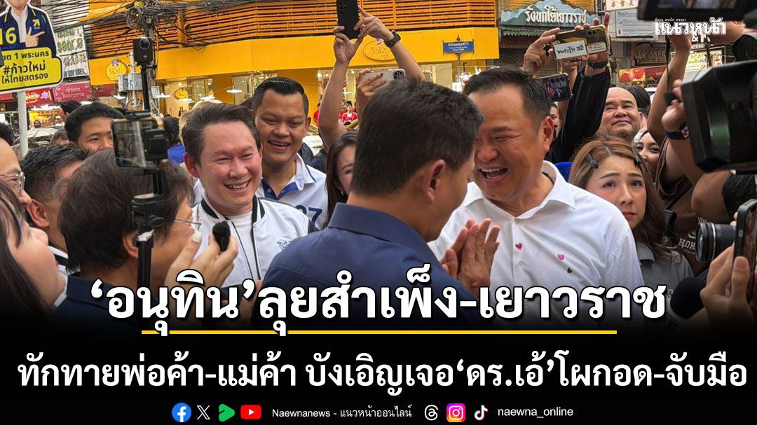 ‘อนุทิน ’ เดินชิลสำเพ็ง-เยาวราช ทักทายพ่อค้า-แม่ค้า-นทท.ต่างชาติ แวะโซ้ยก๋วยจั๊บเจ้าดัง บังเอิญเจอ ‘ดร.เอ้’ โผกอด -จับมือชู บอก’เจอกันที่สภา‘