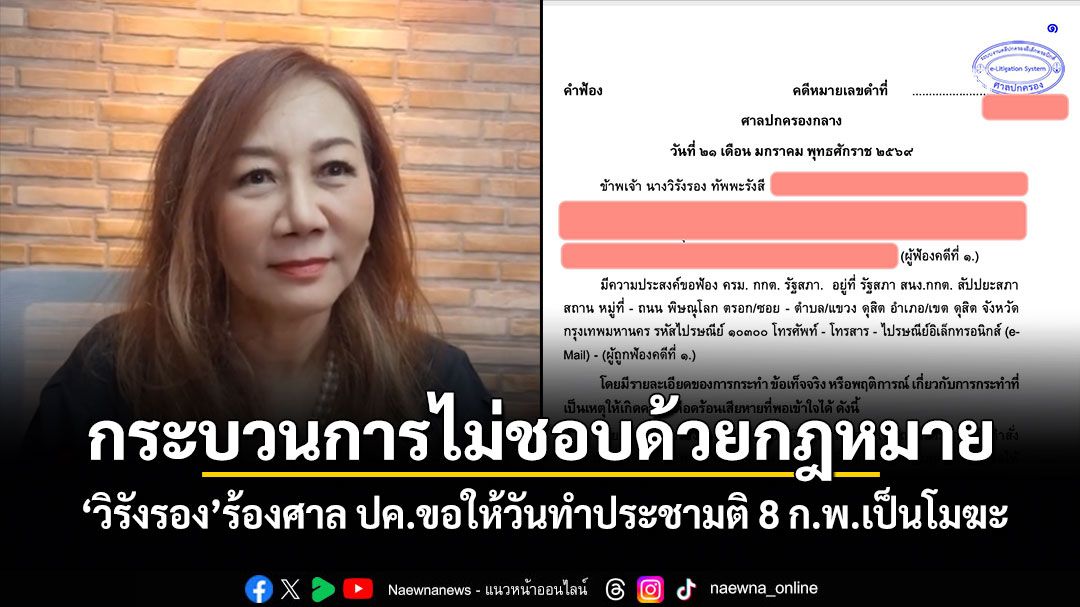 "วิรังรอง"ร้องศาลปกครอง ขอให้วันทำประชามติ 8 ก.พ.เป็นโมฆะ อ้างกระบวนการกำหนดวันไม่ชอบด้วยกฎหมาย ขัดต่อรธน.และละเมิดสิทธิเสรีภาพประชาชน