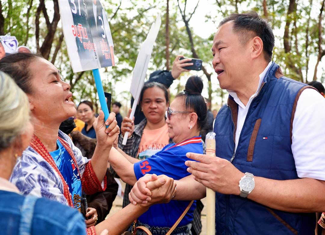 ผู้สื่อข่าวรายงานว่า ภายหลังลงจากเวทีปราศรัย ก่อนเดินทางกลับ นายอนุทินได้เดินเข้าไปทักทายชาวบ้าน ซึ่งได้มีคุณยายนำสายสิญจน์ผูกข้อมือให้กับนายอนุทินตามประเพณีคนอีสาน รวมถึงได้เดินเข้าไปทักทายผู้สูงอายุ ซึ่ง น.ส.ธนนนท์ ภริยา ได้ยืนพูดคุยอยู่ก่อนแล้ว พร้อมเรียกนายกฯ บอกว่า เมื่อครู่คุณยายถามว่านี่ลูกสาวนายกฯ หรอ ขณะที่ผู้สูงอายุบอกว่าดีใจได้เห็นตัวจริง พร้อมอวยพรขอให้ได้เป็นนายกฯ เด้อ ขณะที่นายอนุทิน ตอบว่า “อย่าลืมเบอร์ 37 เด้อ” ซึ่งชาวบ้านตอบกลับว่าไม่ลืม