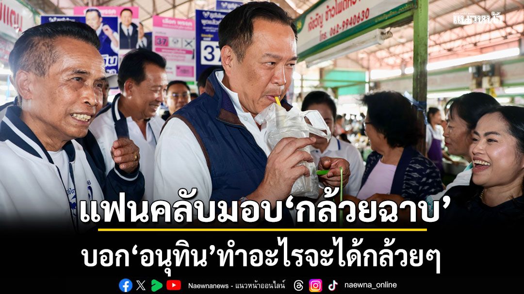 ‘อนุทิน’ เดินตลาดศรีสงคราม แฟนคลับมอบพวงมาลัยกล้วยฉาบ บอก ‘ทำอะไรจะได้กล้วยๆ’ อ้อนกาเบอร์ 1 ส่ง ‘ขวัญ-ศุภพานี’ เข้าสภา ย้ำอย่ากังวลปมชายแดน ลั่น ‘เขมร’ยุ่งเมื่อไหร่รับบทเรียนแสนสาหัส