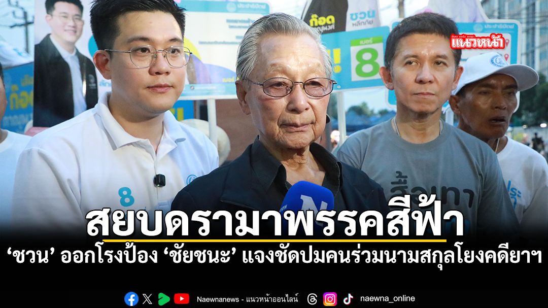 เมื่อถามว่าถึง มีเพจ ออกมาระบุว่าเจ้าหน้าที่ตำรวจเตรียมออกหมายค้นบ้านรองหัวหน้าพรรคสีฟ้าอักษรย่อ "ท." เกี่ยวข้องขบวนการค้ายาเสพติด ซึ่งนายชัยชนะ เดชเดโช รองหัวหน้าพรรคภาคใต้ได้ออกมาชี้แจงรายละเอียดทั้งหมดแล้ว นั้น นายชวน กล่าวว่า ต้องให้ความเป็นธรรมกับนายชัยชนะ ในการชี้แจง ซึ่งมีการระบุแล้วว่าเป็นการขอใช้นามสกุลนี้จากบุคคลอื่น คงจะเป็นเพียงคนร่วมนามสกุล ซึ่งก็ไม่ใช่เรื่องแปลกเพราะคนนามสกุลใหญ่ๆก็มีโอกาสที่มี ทั้งคนดีและคนร้ายที่ต้องให้ความเป็นธรรม