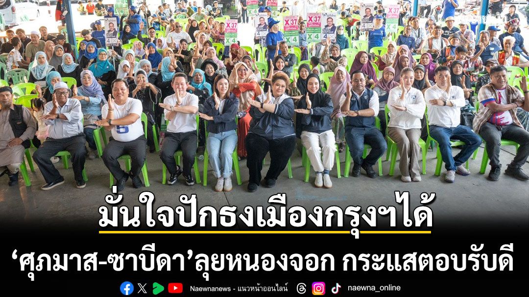 ‘ซาบีดา - ศุภมาส’ ลุยหาเสียงช่วยผู้สมัครสส.กทม.เขต17หนองจอก ชี้ ‘ภูมิใจไทย’ โตขึ้น เติมเต็มจิ๊กซอว์สำเร็จพร้อมดูแลพี่น้องประชาชน ย้ำไม่เปิดด่านชายแดนแน่นอน สร้างรั้วป้องกันประเทศจากภัยต่างๆ หยอดมุกพูดแล้วเสียงหาย แต่คะแนนยังมีให้กัน มั่นใจปักธงเมืองกรุงฯได้
