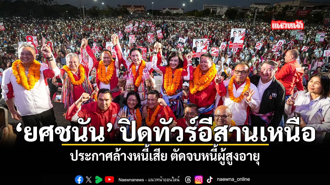 เมื่อวันที่ 22 มกราคม 2569 นายยศชนัน วงศ์สวัสดิ์ แคนดิเดตนายกรัฐมนตรีพรรคเพื่อไทย พร้อมด้วยนายภูมิธรรม เวชยชัย อดีตรองนายกรัฐมนตรี และผู้สมัคร สส.บัญชีรายชื่อพรรคเพื่อไทย และคณะแกนนำพรรคเพื่อไทยร่วมเวทีปราศรัยใหญ่ของพรรคเพื่อไทย ณ ทุ่งศรีเมือง จ.อุดรธานี เป็นเวทีสุดท้ายของทริปทัวร์อีสานเหนือ 2 วัน 3 จังหวัด 7 เวที ตั้งแต่ บึงกาฬ หนองคาย และอุดรธานี มีมีประชาชนร่วมนับหมื่นมาร่วมฟังปราศรัย มอบพวงมาลัยดอกดาวเรือง หมูยอ แจ่วบอง ข้าวแต๋น บรรยากาศคึกคัก