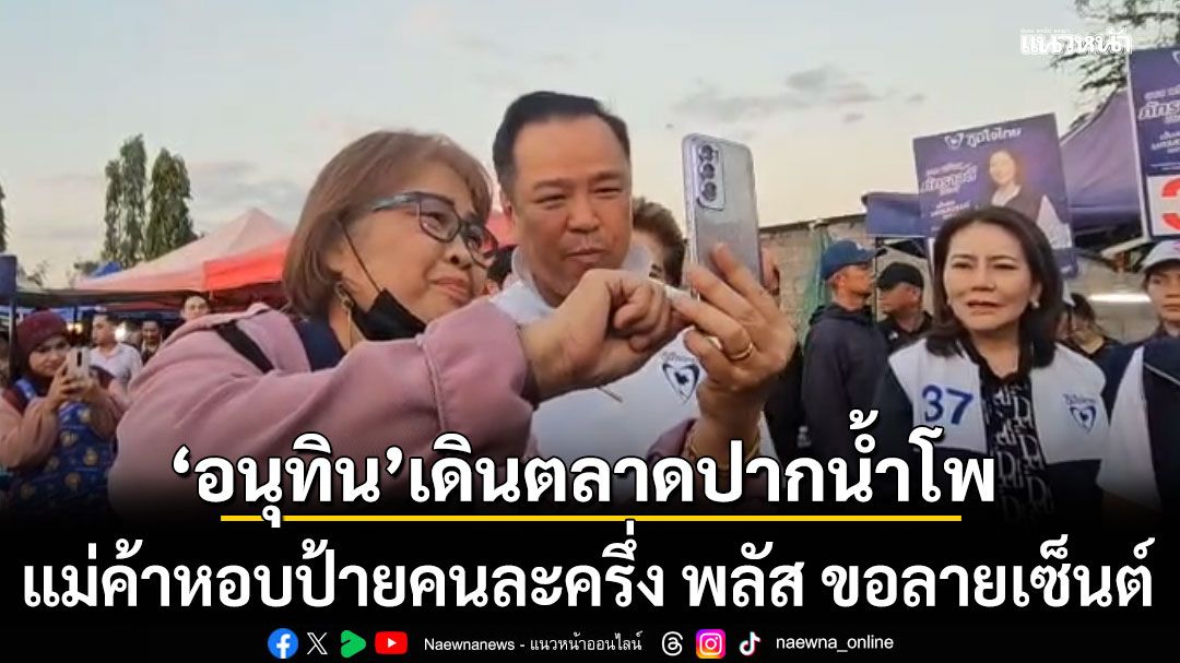 "อนุทิน" เดินตลาด หาเสียงเมืองปากน้ำโพ หวังผลเลิศ "ภูมิใจไทย" กวาด สส.ยกจังหวัด โวกระแสตอบรับดี ขณะชาวบ้านตะโกน "รักลุงตู่ เชียร์ลุงหนู" แม่ค้าหอบป้ายคนละครึ่ง พลัส ขอลายเซ็นต์ อวยพรให้กลับมาเป็นนายกฯ สานต่อนโยบาย รับปากไม่มีเปิดด่าน ลั่นคำอัปมงคล