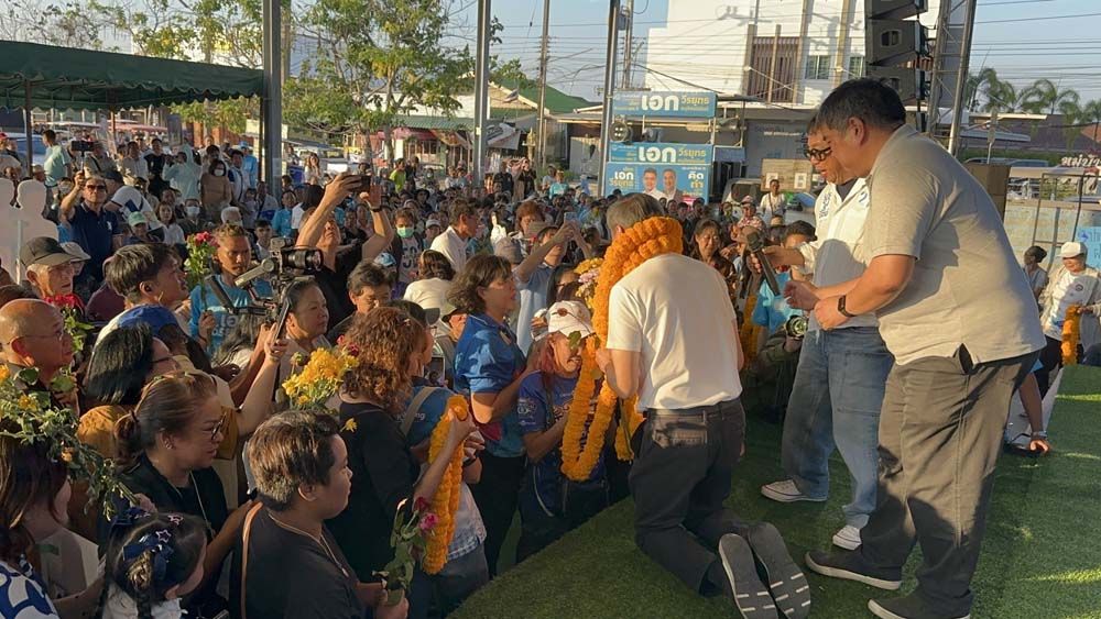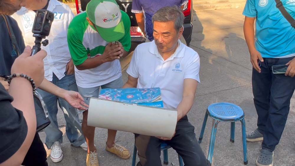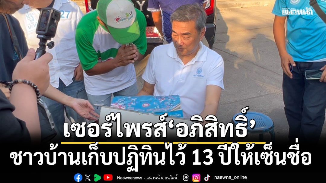 หัวหน้าพรรค ปชป. นายอภิสิทธิ์ เวชชาชีวะ ลงพื้นที่ จ.ระยอง สุดคึกคัก ชาวบ้านถือป้าย หอบดอกไม้ พวงมาลัย ต้อนรับ ชูนโยบายปลุกใจชาวบ้าน ร่วมกันสร้างการเมืองสุจริต ต่อต้านการซื้อเสียง ฮือฮา ชาวบ้านเก็บปฏิทินไว้ 13 ปี รอให้อภิสิทธิ์เซ็นชื่อ
