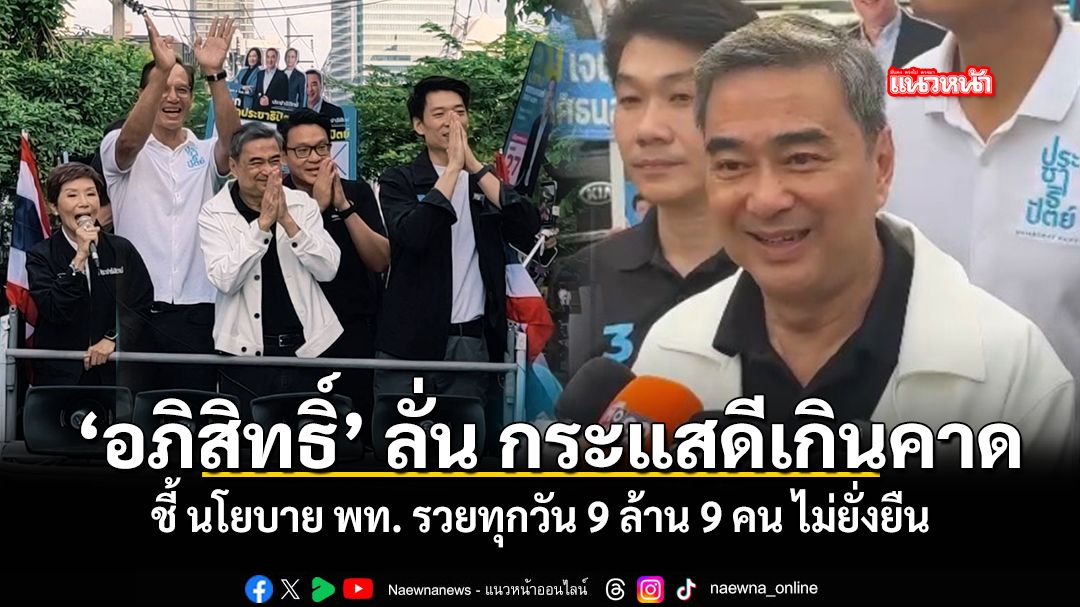 “อภิสิทธิ์”เผยกระแสปชป.กรุงเทพ-ตะวันออกดีเกินคาด ชี้ นโยบาย “รวยทุกวัน 9 ล้าน 9 คน”ไม่ยั่งยืน แนะนำเงินไปพัฒนาทักษะคนล้านคนคุ้มกว่า