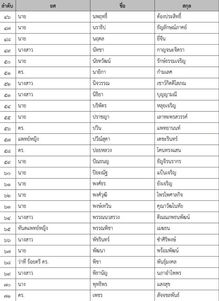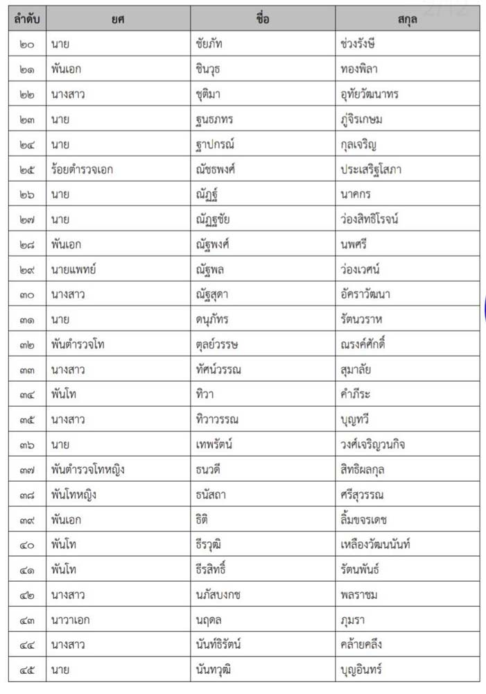 โดยมีรายชื่อ นักการเมือง ทหาร-ตำรวจ-ข้าราชการ-ภาคเอกชน อาทิ นางสาวไตรศุลี ไตรสรณกุล เลขาธิการนายกฯ นายพัฒนา พร้อมพัฒน์ รมว.สาธารณสุข บุตรชายของ นายสันติ พร้อมพัฒน์ นางสาวอัยรินทร์ พันธุ์ฤทธิ์ รองโฆษกรัฐบาล นางสาวพัชรินทร์ ซำศิริพงศ์ ผู้สมัครสส.กทม. พรรคภูมิใจไทย นางสาวอัยรินทร์ นางสาวทิพานัน ศิริชนะ อดีต สส.รวมไทยสร้างชาติ นางสาวนิธิยา บุญญามณี บุตรสาว นายนิพนธ์ บุญญามณี