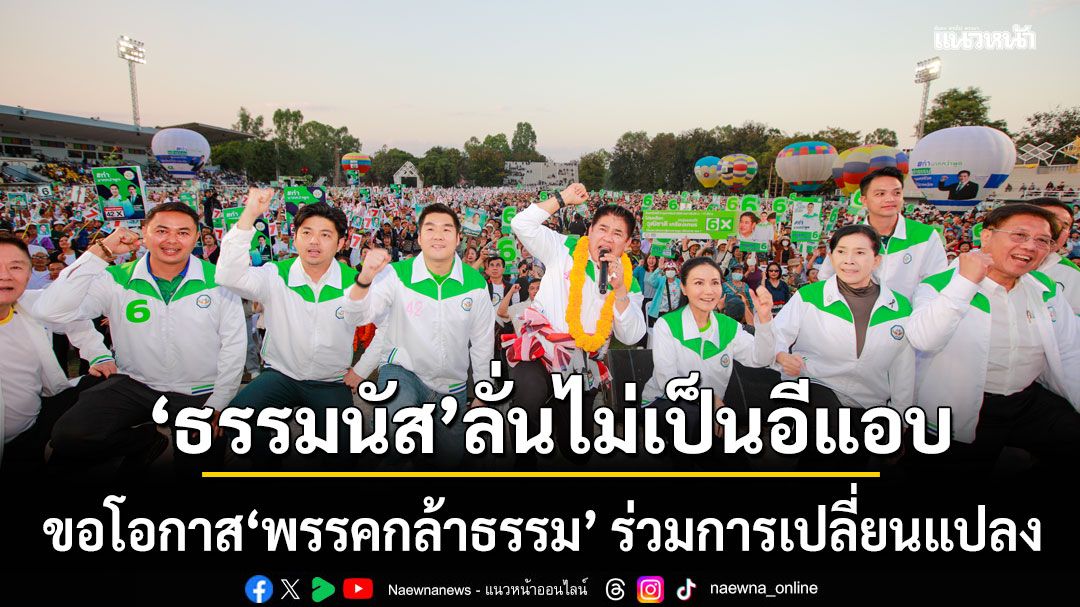 “พรรคกล้าธรรม”ปราศรัยใหญ่เชียงราย “ธรรมนัส–นฤมล”ชวนมาร่วมเปลี่ยนแปลงไปด้วยกัน ลั่น พร้อมพัฒนาเชียงรายควบคู่พะเยา ผู้นำรับผิดชอบตัวจริง ไม่เป็นอีแอบ ย้ำ ดูแลพื้นที่ห่างไกล–กลุ่มชาติพันธุ์ครบมิติ
