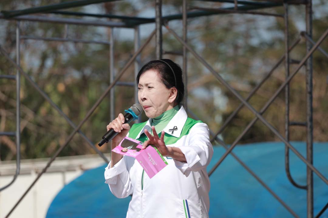นางปวีณา หงสกุล กล่าวปราศรัยถึงภาพรวมปัญหาสังคมไทยในปัจจุบันว่า สถานการณ์หลายด้านมีความเปราะบางมากขึ้น ทั้งปัญหาครอบครัว ความรุนแรงต่อเด็กและสตรี ตลอดจนปัญหาปากท้องของประชาชนที่เชื่อมโยงกับหนี้สินและยาเสพติด จากประสบการณ์ทำงานด้านสังคมสงเคราะห์และช่วยเหลือเด็ก สตรี และครอบครัวมาอย่างต่อเนื่องยาวนานกว่า 30 ปี ทำให้เห็นปัญหาเชิงโครงสร้างที่หมักหมมและต้องการการแก้ไขอย่างจริงจังในระดับนโยบาย การเข้ามาทำงานร่วมกับพรรคกล้าธรรมเป็นโอกาสในการผลักดันประเด็นสังคมให้กลายเป็นวาระสำคัญของประเทศ