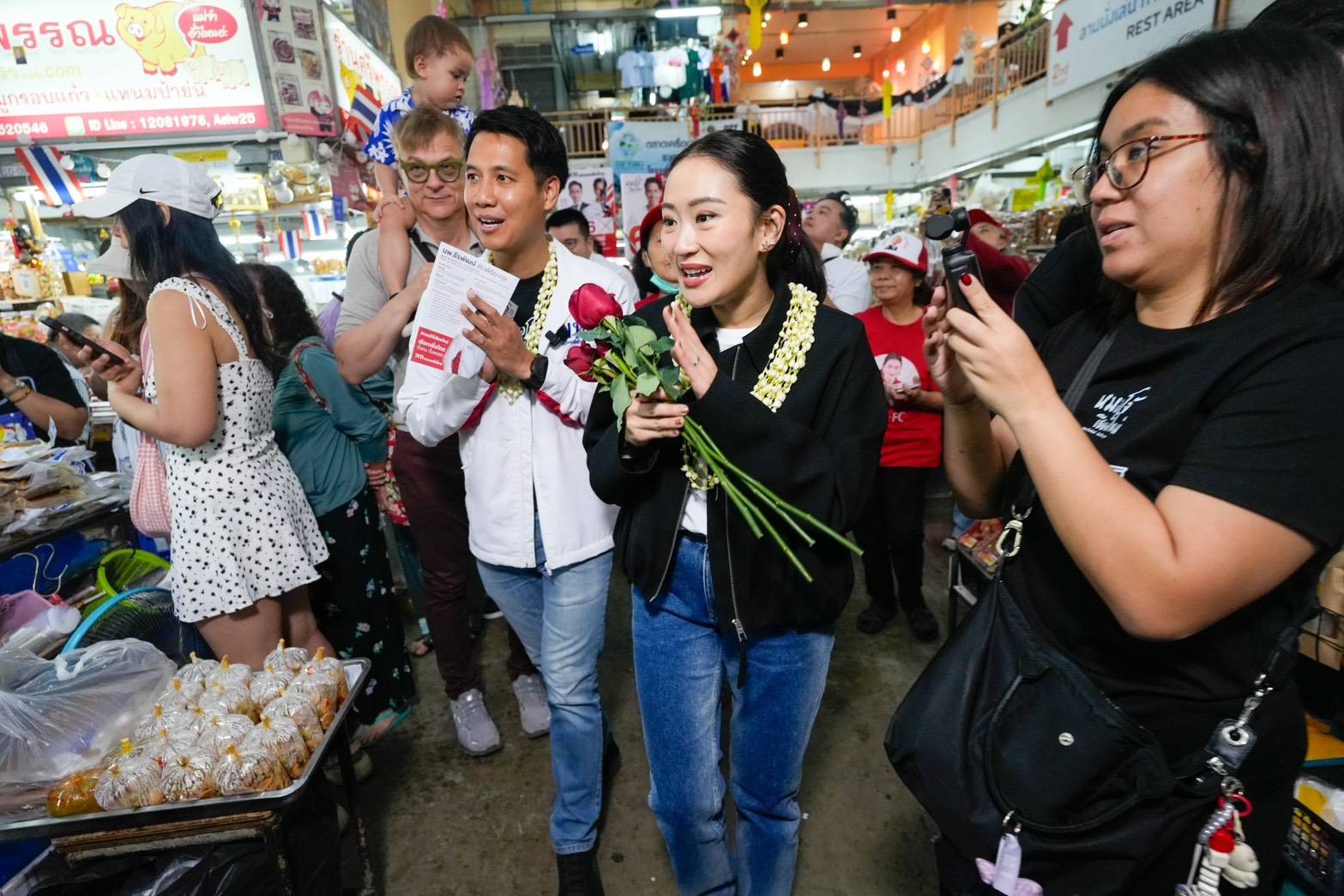 สำหรับบรรยากาศการลงพื้นที่เป็นไปอย่างคึกคัก มีพ่อค้าแม่ค้าและประชาชนเข้ามาทักทาย ขอถ่ายภาพร่วม มอบดอกไม้และสตรอเบอร์รี พร้อมให้กำลังใจน.ส.แพทองธาร และผู้สมัครตลอดการลงพื้นที่