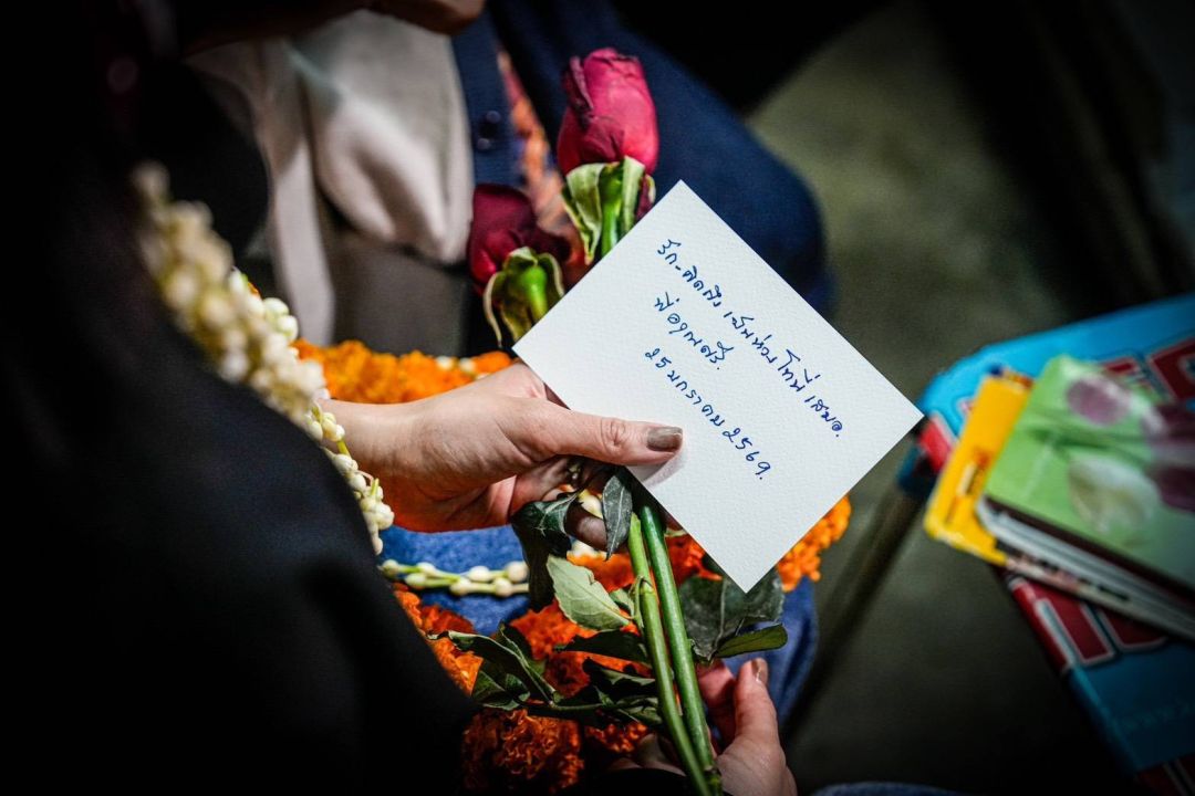 โดยป้าอรุณศรีได้มอบพวงมาลัยให้กับน.ส.แพทองธารและ นพ.ธีรพัฒน์ เพื่อเป็นกำลังใจ พร้อมเขียนการ์ดแสดงความห่วงใยถึงนายทักษิณ ฝากให้น.ส.แพทองธารนำไปมอบให้ ทั้งนี้ ก่อนออกจากร้านยังได้มอบส้มเป็นที่ระลึกให้กับทั้งสองคน