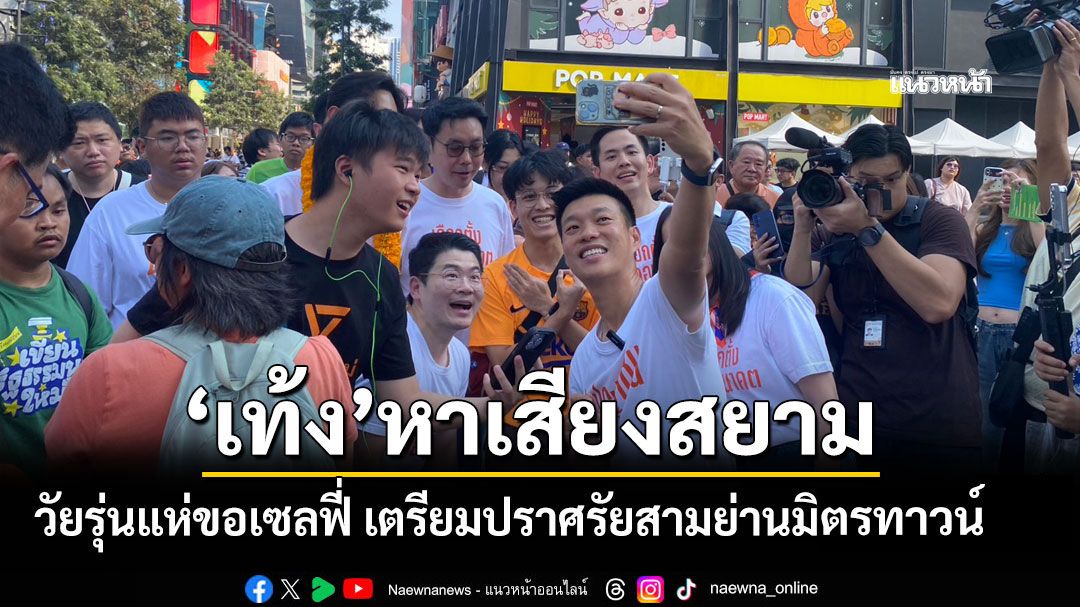'เท้ง ณัฐพงษ์'ลุยสยามสแควร์ วัยรุ่นขอเซลฟี่ให้กำลังใจพรรคส้ม ก่อนขึ้นปราศรัยสามย่านมิดทาวน์เย็นนี้