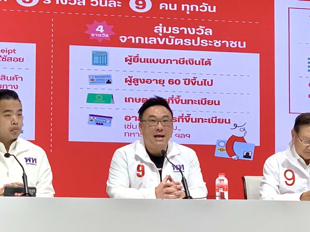สำหรับนโยบาย “สร้างเศรษฐีเงินล้าน วันละ 9 คน” เปิดโอกาสให้คนไทยมีสิทธิ์ลุ้นเป็นเศรษฐีเงินล้านได้ทุกวัน วันละ 9 รางวัล รางวัลละ 1 ล้านบาท เป็นนโยบายที่ออกแบบมาเพื่อหาเงินให้รัฐ สร้างระบบสวัสดิการที่ยั่งยืน และสร้างฐานข้อมูล Big Data โดยใช้การลุ้นรางวัลเป็นเครื่องมือจูงใจให้ประชาชนเข้าสู่ระบบภาษีและระบบฐานข้อมูลของรัฐ