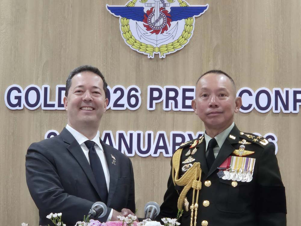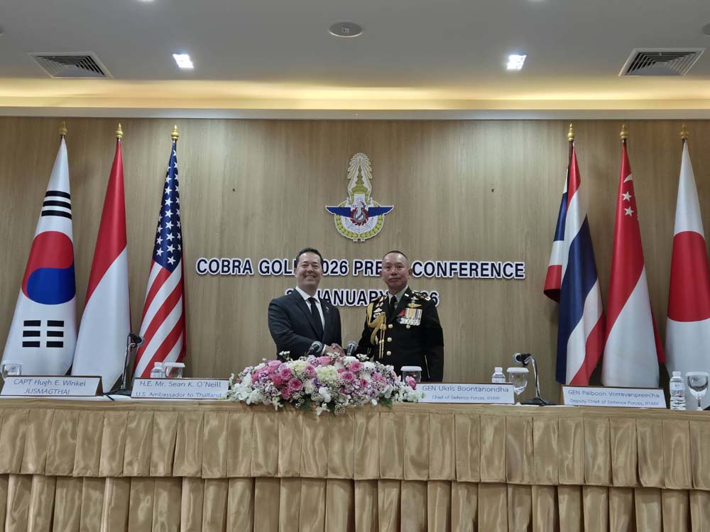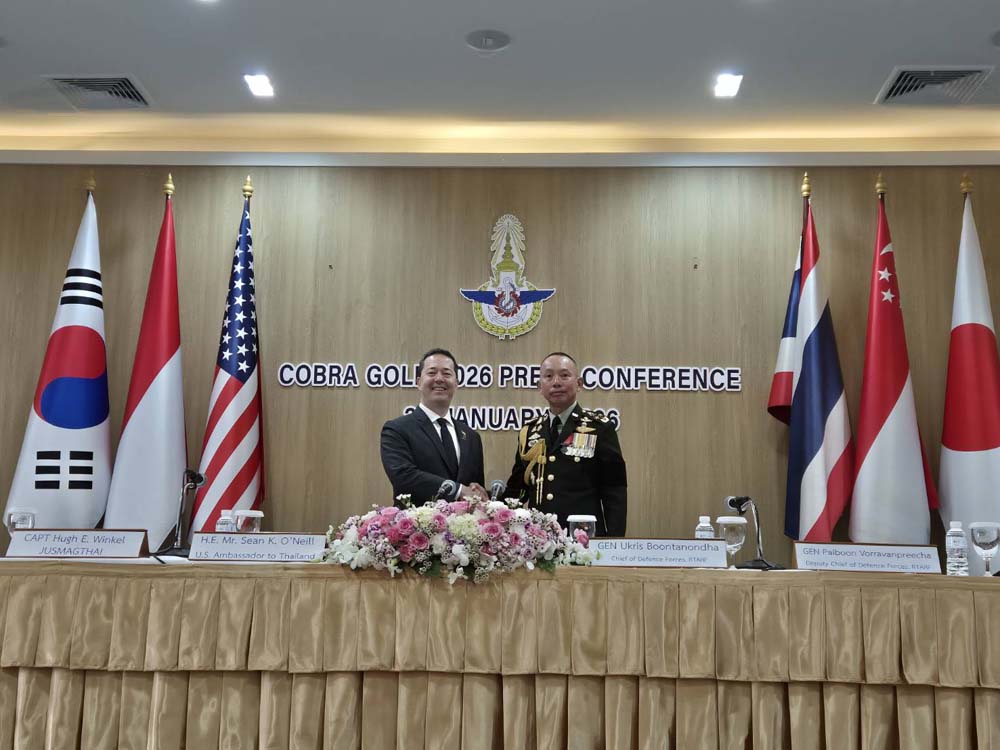 26 มกราคม 2569 เวลา 08.30 น.ที่อนุสรณ์สถานแห่งชาติ สถาบันวิชาการป้องกันประเทศ จังหวัดปทุมธานี พลเอก อุกฤษฎ์ บุญตานนท์ ผู้บัญชาการทหารสูงสุด ร่วมกับ นาย ฌอน เค. โอนีลล์ (SEAN K. O’NEILL) เอกอัครราชทูตสหรัฐอเมริกาประจำประเทศไทย เป็นประธาน แถลงข่าวการฝึกร่วม/ผสม คอบร้าโกลด์ 2026 พร้อมด้วย ผู้แทนกองทัพสหรัฐอเมริกา และผู้แทนกองทัพมิตรประเทศ ที่เข้าร่วมการฝึกฯ