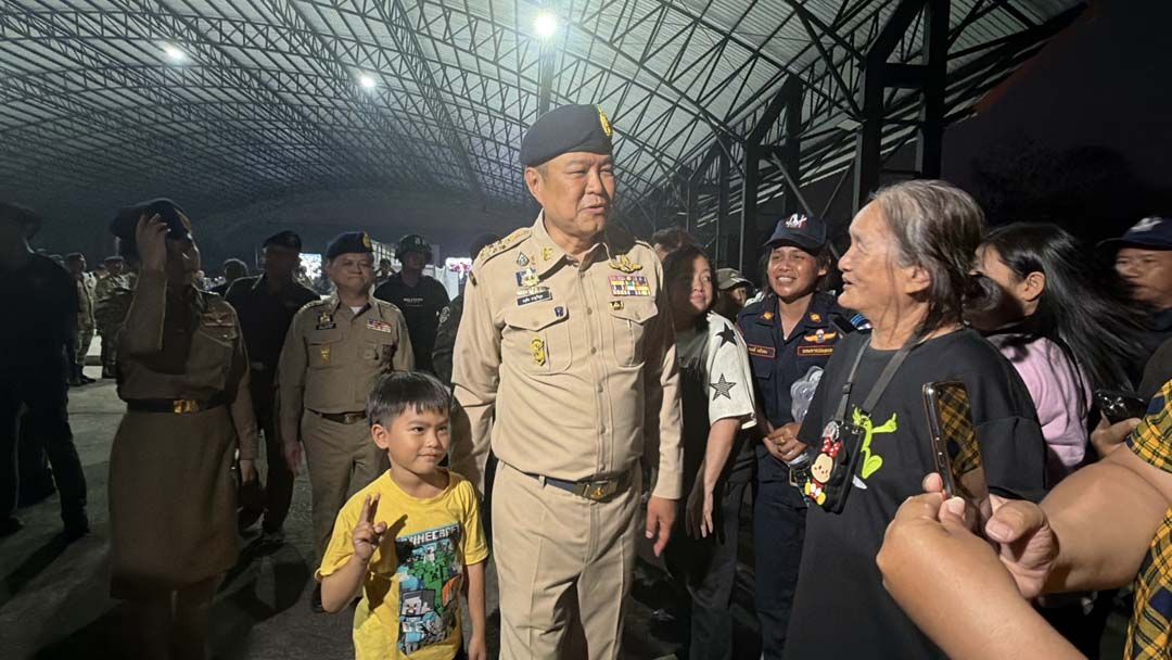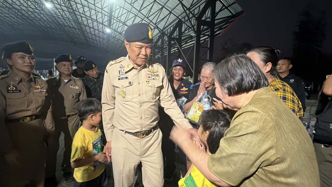 นายกฯ กล่าวต่อว่า พี่น้อง ชรบ.ทุกคน วันนี้ตนต้องขอพูดว่า ในนามของรัฐบาลและในนามของพี่น้องประชาชนชาวไทยทุกคน ต้องขอบคุณความเสียสละของท่านการที่ตนได้มาหน้างานแบบนี้ ทำให้ตนได้เห็นว่ามันไม่ใช่เป็นเพียงกองกำลังที่เรียกตัวเองว่า ชรบ. แล้วคอยเฝ้าหมู่บ้านคอยประสานงานอำนวยความสะดวกให้กับพี่น้องประชาชนเท่านั้น วันนี้ตนนั่งอยู่ในรถฟังคนอธิบายให้ตนได้ฟังถึงความทุ่มเทเสียสละของพวกท่าน ท่านเสียสละแม้กระทั่งความปลอดภัยของตัวเอง เพราะในขณะที่มีสถานการณ์สู้รบ การดำเนินการอพยพพี่น้องประชาชนไปยังศูนย์อพยพ เพื่อความปลอดภัยของพวกเขา แต่พี่น้อง ชรบ.ทั้งหลายก็ยังคงอยู่ในหมู่บ้าน เพื่อทำให้พวกเขาได้มั่นใจว่าบ้านเรือนทรัพย์สิน เงินทองของพวกเขาว่ามีคนคอยดูแล ถ้าไม่ได้พวกท่านคอยดูแลอยู่เราจะไม่สามารถทำให้เขาได้สบายใจได้เลย ในขณะที่ชาวบ้านต้องอพยพไปยังศูนย์อพยพนี่คือความเสียสละความทุ่มเท และความที่ทุกท่านมีจิตอาสาที่จะทำให้พี่น้องประชาชนได้เกิดความสบายใจ ในขณะที่เขาต้องจากบ้านเรือน เพื่อไปหลบภัยจากการสู้รบ ภัยจากสงคราม