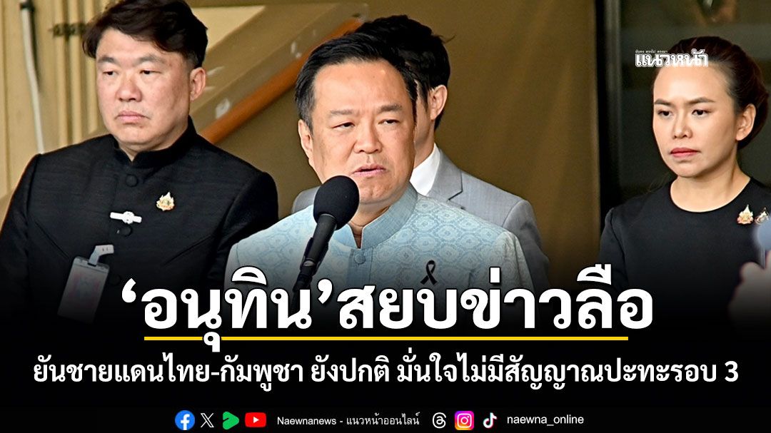 "อนุทิน"สยบข่าวลือ! ยันชายแดนไทย-กัมพูชา ยังปกติ มั่นใจไม่มีสัญญาณปะทะรอบ 3 หลังลงพื้นที่สระแก้วตรวจแนวรบ เผยปม"กัมพูชา"ขุด"คูเลต"เป็นยุทธวิธีป้องกันประเทศเขา ย้ำ"กองทัพไทย"เฝ้าระวังใกล้ชิดตามข้อตกลงหยุดยิง ขอประชาชนใช้ชีวิตปกติ ส่วนหน้าที่ปกป้องประเทศเป็นของรัฐบาล-กองทัพ ชี้ยังไม่จำเป็นต้องเรียกประชุม สมช.เพื่อประเมินสถานการณ์ก่อนเลือกตั้ง
