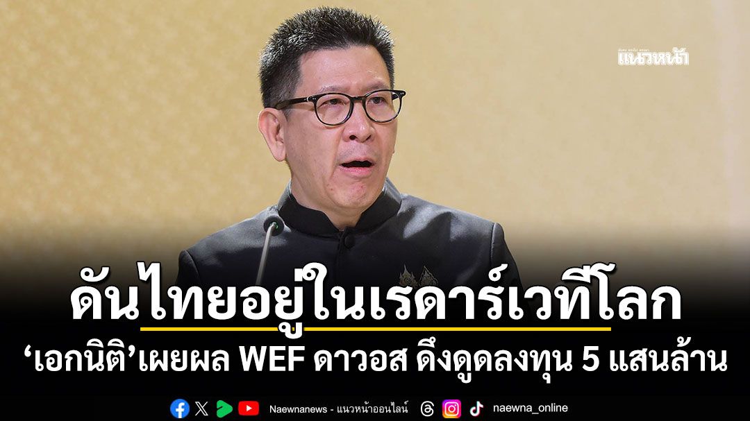 เมื่อวันที่ 27 มกราคม 2569 ที่ทำเนียบรัฐบาล นายเอกนิติ นิติทัณฑ์ประภาศ รองนายกรัฐมนตรี และรมว.คลัง กล่าวว่า ตามที่ได้รับมอบหมายจากนายกฯ ให้นำทีมไทยแลนด์ เข้าร่วมเวที WEF ณ เมืองดาวอส สมาพันธรัฐสวิส ซึ่งการประชุมครั้งนี้มีหัวใจสำคัญคือการเป็นเวทีแห่งการพูดคุยของผู้นำเพื่อกำหนดทิศทางเศรษฐกิจ การค้า การเงิน และการลงทุนของโลก โดยเรื่องแรกประเทศไทยได้แสดงบทบาทอยู่ในเรดาร์ของเวทีโลกอย่างชัดเจน ภายใต้บริบทที่เศรษฐกิจโลกเกิดขึ้นท่ามกลางความขัดแย้งทางภูมิรัฐศาสตร์และโลกแตกขั้ว