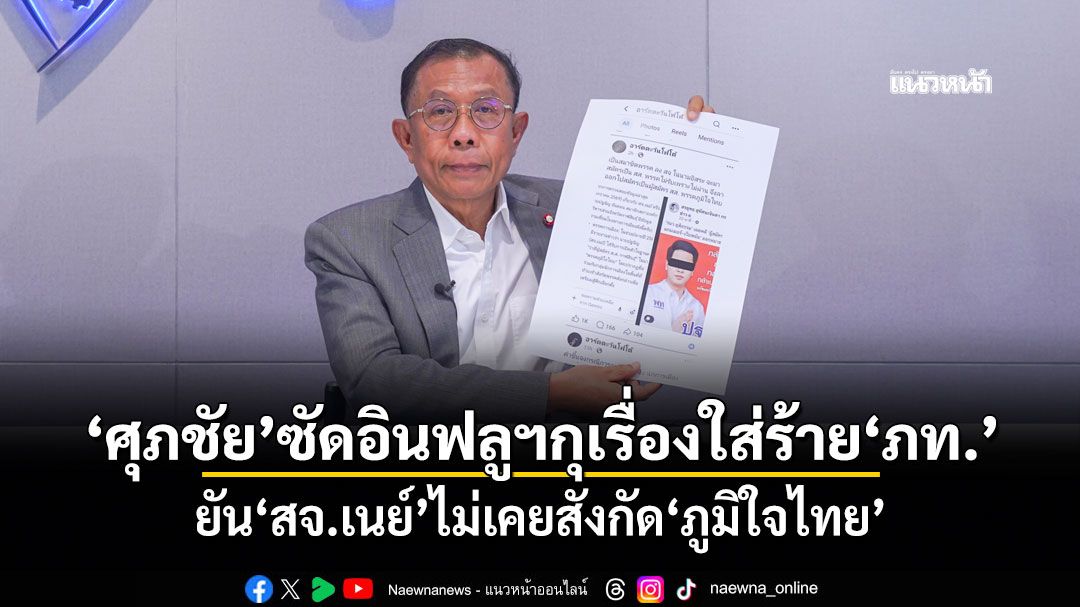"ศุภชัย"ซัดอินฟลูฯกุเรื่องใส่ร้ายลาม"ภูมิใจไทย" ยัน"สจ.เนย์"ผู้ต้องหาคดีเว็บหวยเป็นอดีตสมาชิกเพื่อไทย ไม่เคยสังกัด ภท. ลั่นดำเนินคดีถึงที่สุด เตือนคนแชร์ผิดด้วย