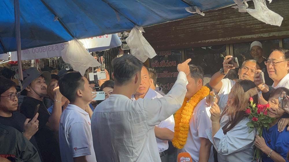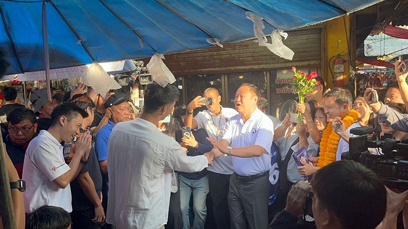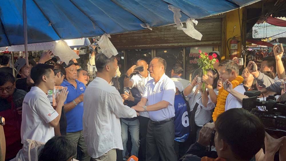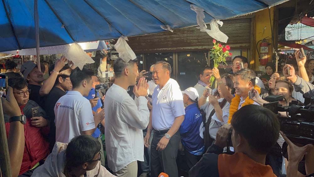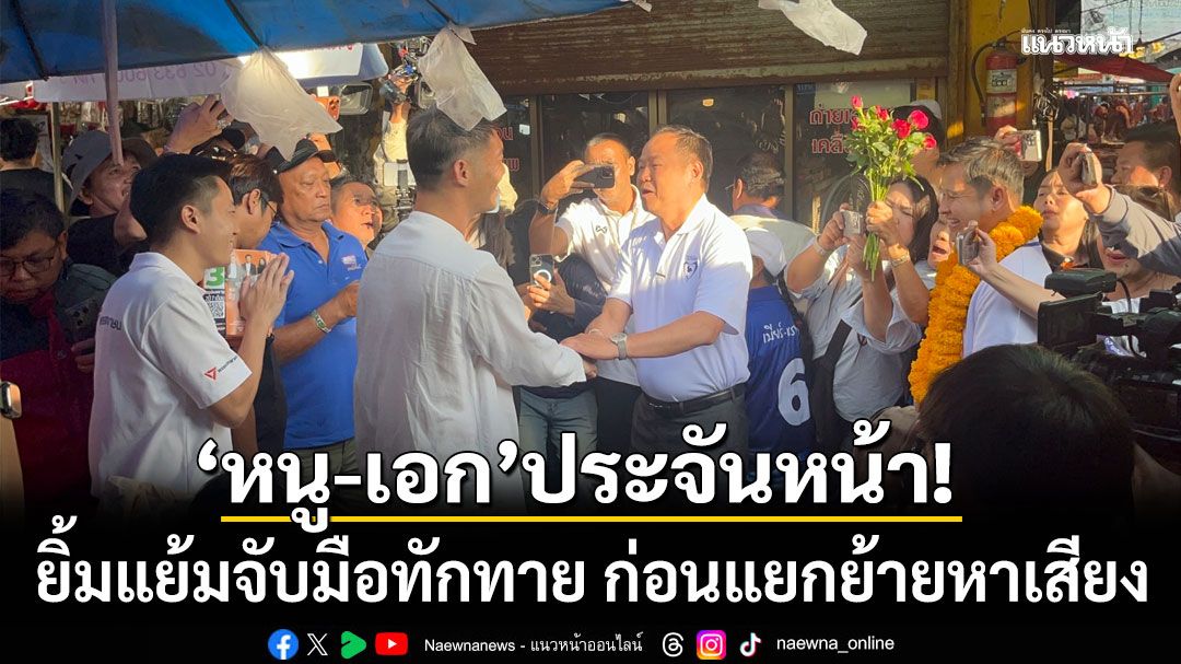 ‘อนุทิน‘ ลุยหาเสียงเมืองกรุงเก่า ป๊ะเข้ากับ ‘ธนาธร’ กำลังช่วย ‘พรรคส้ม’ ขอคะแนน โบกมือ-จับมือทักทาย ส่งซิกถาม-ตอบ ‘พี่ไปทางโน้นใช่ไหม ผมจะได้ไปทางนี้ เสียงจะได้ไม่ตีกัน’ ก่อนแยกย้าย ด้าน ‘แม่ค้า’ ตะโกน เลือกอยู่แล้ว ตั้งแต่ประกาศไม่เอากาสิโน