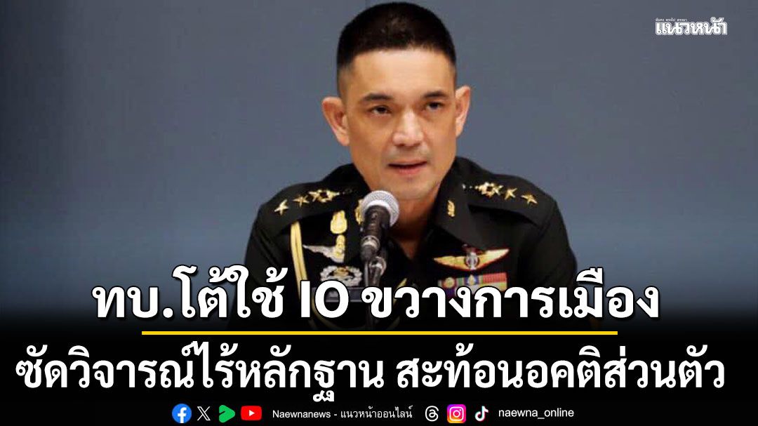 โฆษก ทบ. ติง นักการเมือง กล่าวหา กองทัพ ขวางการเมือง ไร้การพิสูจย์ สะท้อน ทัศนคติมีต่อองค์กรทหาร ชี้การวิพากษ์วิจารณ์ควรตั้งอยู่บนจริยธรรม ความจริง และความรับผิดชอบ
