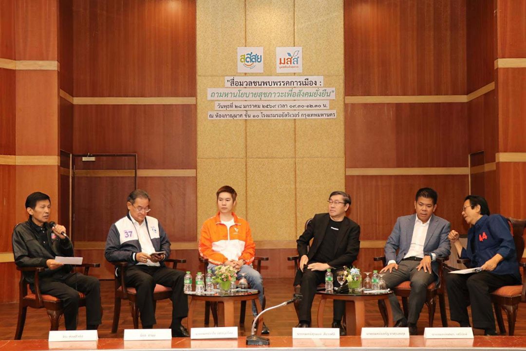 วันนี้ (28 ม.ค.2569) ณ ห้องภาณุมาศ ชั้น 10 โรงแรมรอยัลริเวอร์ บางพลัด กรุงเทพฯ, มูลนิธิสื่อเพื่อสุขภาวะ (มสส.) จัดเสวนา ในหัวข้อ "สื่อมวลชนพบพรรคการเมือง : ถามหานโยบายสุขภาวะเพื่อสังคมยั่งยืน" โดยมีตัวแทนจาก 5 พรรคการเมืองสำคัญเข้าร่วมเสวนาฯ และมี นายจิระ ห้องสำเริง สื่อมวลชนอาวุโส เป็นผู้ดำเนินรายการ พร้อมด้วย ตัวแทนเครือข่ายภาคประชาชน และสื่อมวลชนแขนงต่างๆ เข้าร่วมรับฟังฯในครั้งนี้