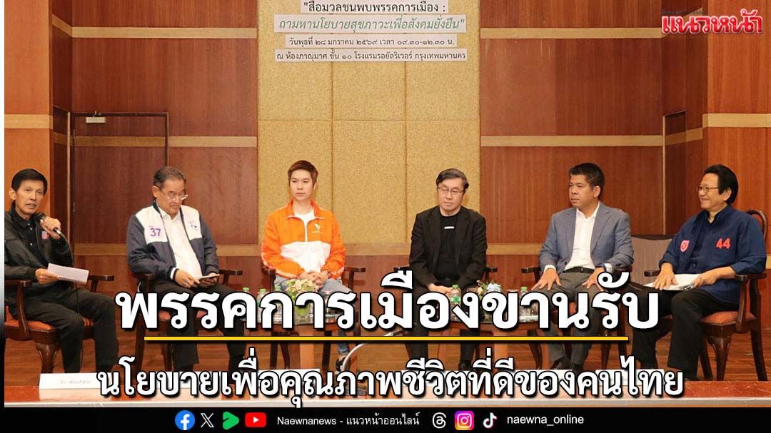 เวทีพรรคการเมืองขานรับปมสุขภาวะ ดันนโยบายเพื่อคุณภาพชีวิตที่ดีของคนไทย พร้อมดึง “กัญชา-กระท่อม” กลับสู่บัญชียาเสพติด ชี้! ขยายเวลาขายเหล้าถึงตี 4 ไม่ก่อประโยชน์ แถมเพิ่มสถิติอุบัติเหตุเมาแล้วขับ เผย! ภาคประชาชนห่วงนโยบาย “หวย” หวั่นมอมเมาประชาชน