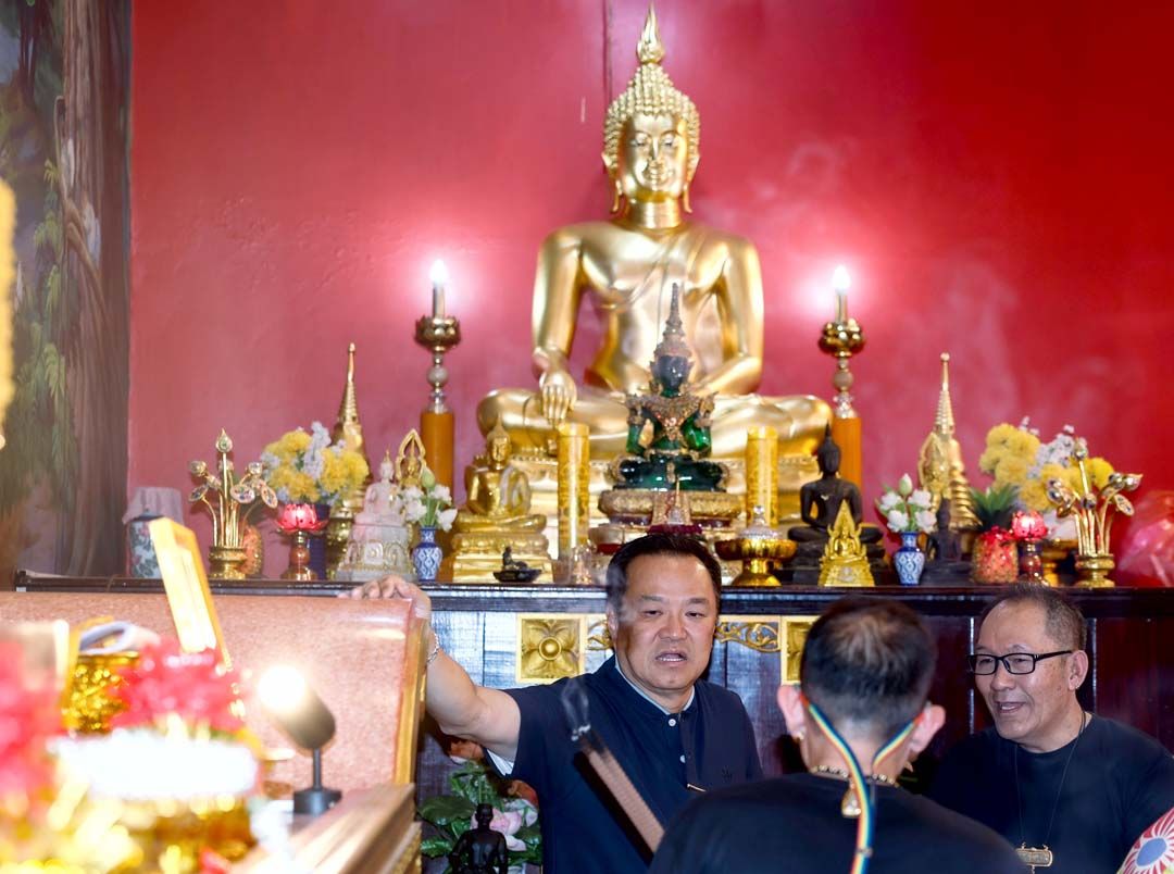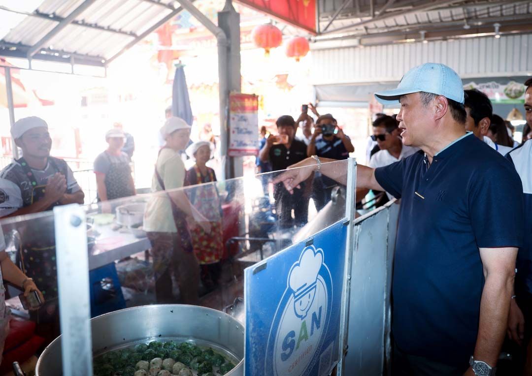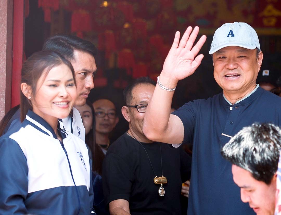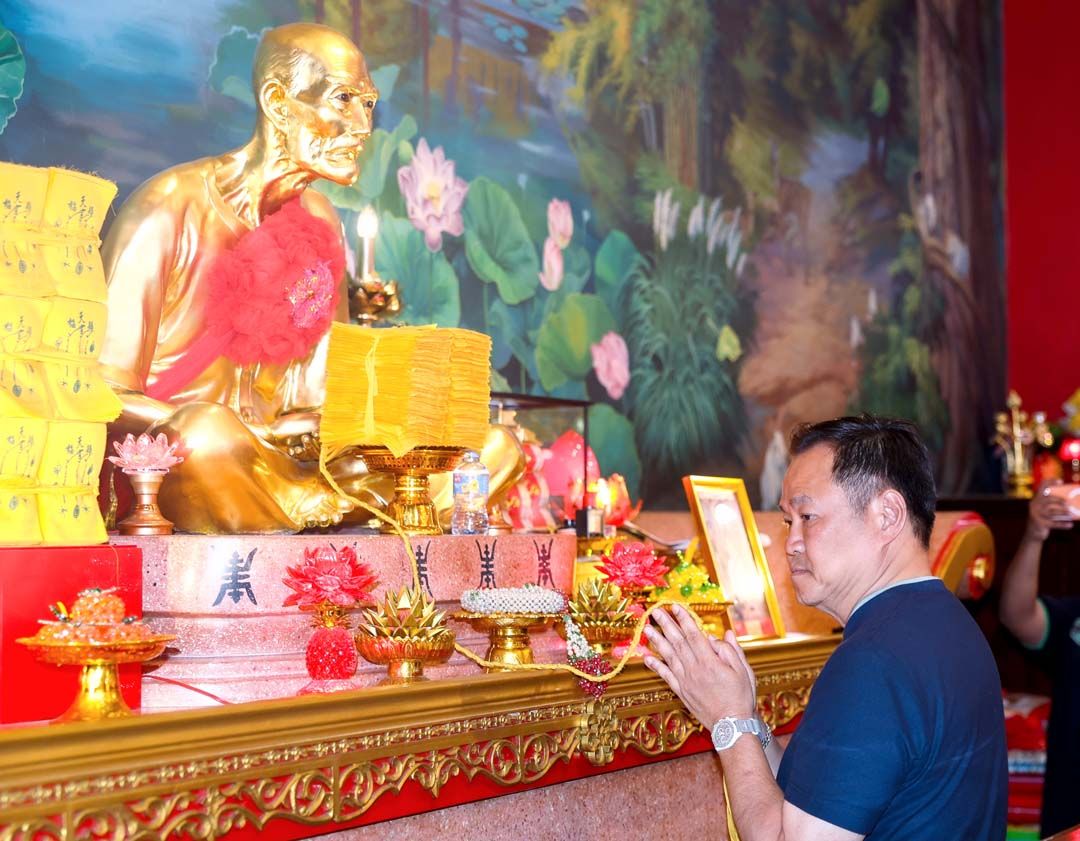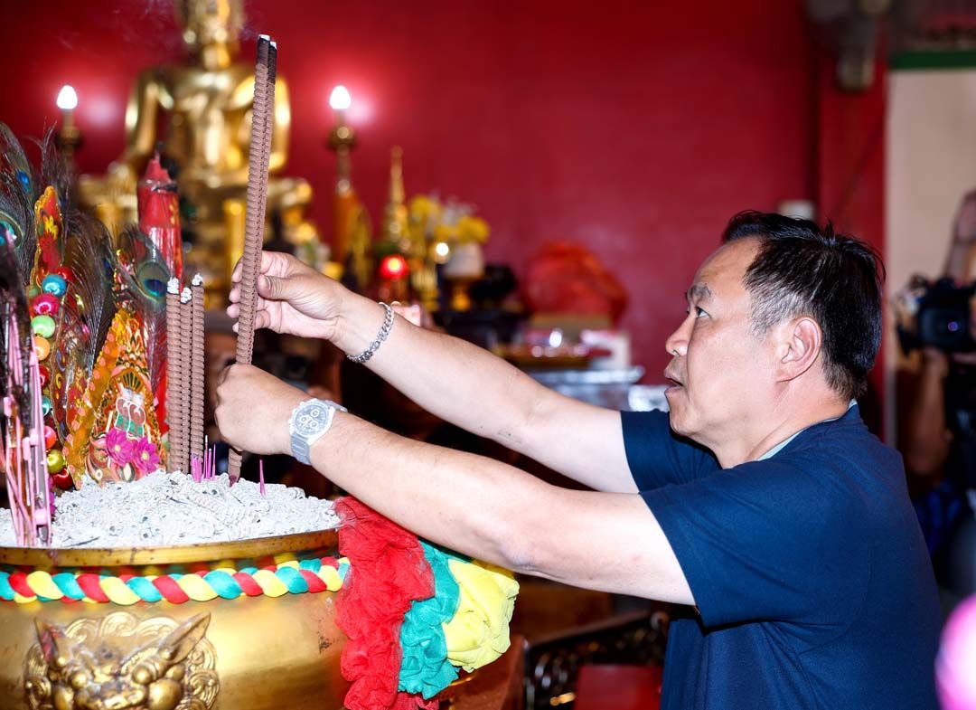 จากนั้น นายอนุทินได้รับมอบสิงห์โตกวักสีทองที่ระลึกจากร้านค้า ขณะเดียวกัน ช่วงหนึ่งมีประชาชนเดินมาบอก "รักลุงตู่ แล้วก็รักท่านเหมือนกัน" ต่อจากนั้นนายอนุทิน และคณะ ได้เข้าไปด้านในศาลานที ทองศิริ เพื่อขอพรเซียนแปะโรงสี และรับมอบผ้ายันต์ 3 ตา จากผู้ดูแลศาลเจ้า ซึ่งเป็นสิ่งมงคลที่จะนำชัยให้กับผู้รับ พร้อมทั้งมอบผ้ายันต์ฟ้าประทานพร และส้มมงคลเพื่อให้ร่ำรวยยิ่งขึ้น