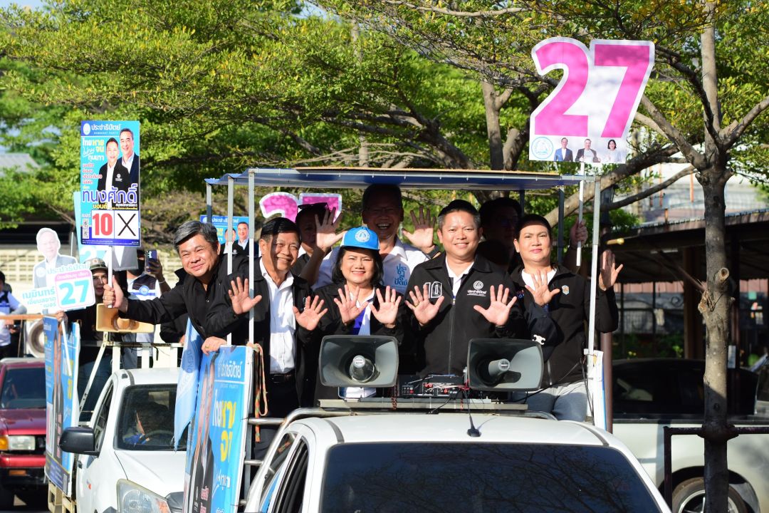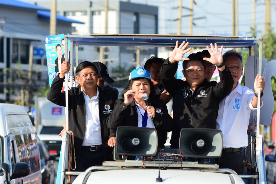 ต่อมาในเวลา 16.30 น. คณะผู้บริหารพรรคและผู้สมัครได้ขึ้นรถแห่หาเสียงจำนวน 3 คัน เคลื่อนขบวนจากตลาดเตียกุ่ยฮวด ผ่านตลาดเสริมสุข และพื้นที่ต่าง ๆ ในอำเภอบางบ่อ ก่อนวนกลับมาจอดบริเวณหน้าตลาดเสริมสุข และเริ่มปราศรัยบนรถแห่ในเวลา 17.00 น. โดยผู้บริหารพรรคและผู้สมัครได้นำเสนอนโยบาย มุ่งเน้นการพัฒนาคุณภาพชีวิตของประชาชน การกระตุ้นเศรษฐกิจฐานราก การดูแลปัญหาปากท้องของพี่น้องประชาชน รวมถึงการพัฒนาโครงสร้างพื้นฐานในพื้นที่อำเภอบางบ่อให้สอดคล้องกับการเติบโตของจังหวัดสมุทรปราการ พร้อมย้ำจุดยืนการทำงานทางการเมืองด้วยความสุจริต โปร่งใส และยึดประโยชน์ของประชาชนเป็นศูนย์กลาง โดยขอแรงสนับสนุนจากประชาชนให้ร่วมกันผลักดันการเปลี่ยนแปลงผ่านกลไกสภาผู้แทนราษฎรต่อไป