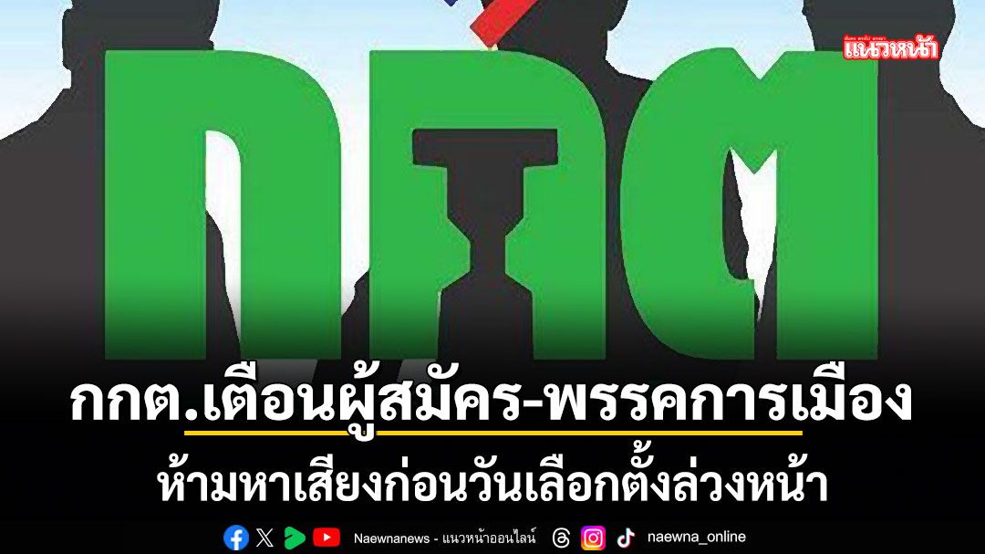 กกต.เตือนผู้สมัคร-พรรคการเมือง ห้ามหาเสียงก่อนวันเลือกตั้งล่วงหน้า และหาเสียงใกล้หน่วยเลือกตั้งกลาง ที่จะมีการเลือกตั้ง สส.ล่วงหน้า ในวันอาทิตย์นี้ รวมทั้งห้ามจำหน่ายจ่ายแจกสุรา