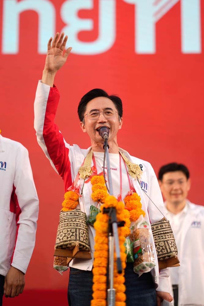 นอกจากนี้ ยังได้ตอกย้ำนโยบายเศรษฐกิจที่จับต้องได้ ทั้งแก้หนี้แบบครบวงจร พักชำระหนี้เกษตรกร 3 ปี และ ประกันราคาสินค้าเกษตร 30% เพื่อดึงประชาชนออกจากวิกฤตความยากจน