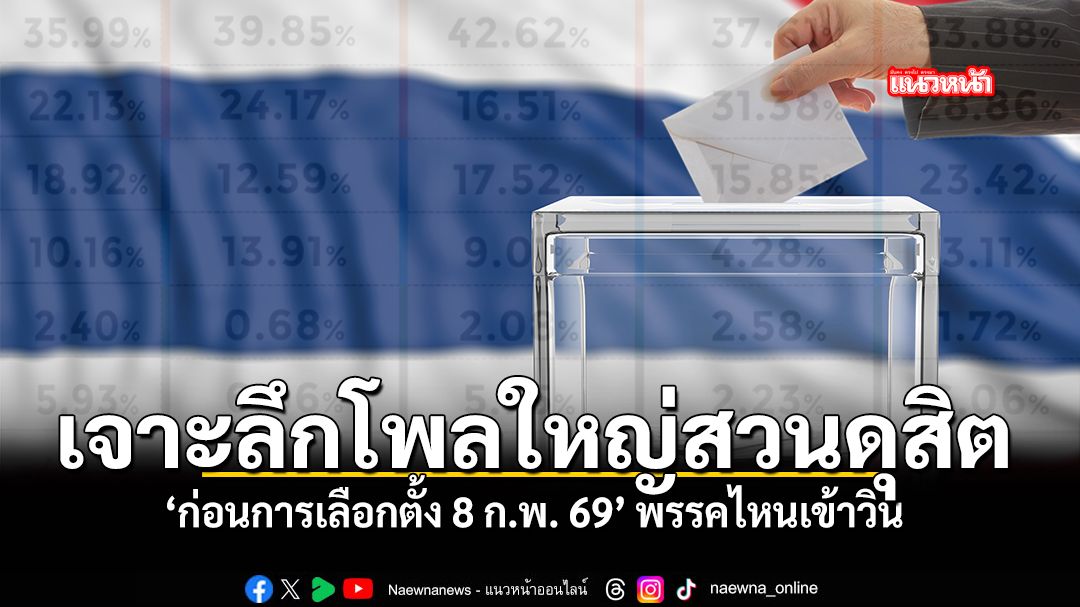 “สวนดุสิตโพล” มหาวิทยาลัยสวนดุสิต สำรวจความคิดเห็นประชาชนทั่วประเทศ เรื่อง “ก่อนการเลือกตั้ง 8 ก.พ. 2569” กลุ่มตัวอย่างจำนวน 26,621 คน (สำรวจทางภาคสนาม 100%) ระหว่างวันที่ 16-28 มกราคม 2569 พบว่า พรรคการเมืองแบบบัญชีรายชื่อ (ปาร์ตี้ลิสต์) ที่กลุ่มตัวอย่างจะเลือก คือ พรรคประชาชน ร้อยละ 35.99 รองลงมาคือ เพื่อไทย ร้อยละ 22.13 ภูมิใจไทย ร้อยละ 18.92 ด้าน สส. เขต จะเลือกสังกัดพรรคประชาชน ร้อยละ 33.46 รองลงมาคือ ภูมิใจไทย ร้อยละ 21.52 เพื่อไทย ร้อยละ 20.60 และอยากให้นายณัฐพงษ์ เรืองปัญญาวุฒิ (ปชน.) เป็นนายกรัฐมนตรี ร้อยละ 35.07 รองลงมาคือ นายยศชนัน วงศ์สวัสดิ์ (พท.) ร้อยละ 21.53 และนายอนุทิน ชาญวีรกูล (ภท.) ร้อยละ 16.11