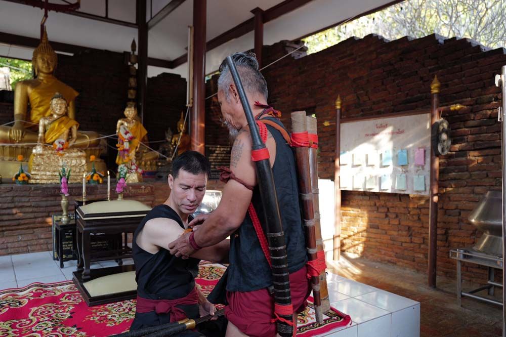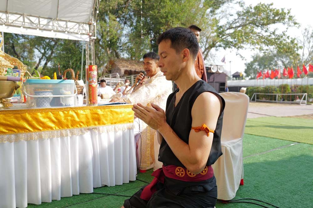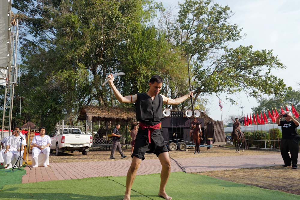 ทั้งนี้ พระครูวิชิต พุทธิคุณ หรือที่รู้จักกันในนาม หลวงพ่ออาวุธ เจ้าอาวาสวัดโพธิ์เก้าต้น ได้มอบ ผ้าประเจียดซึ่งเป็นจีวรของท่าน และเป็นรุ่นเดียวกับที่ปลุกเสกให้แม่ทัพกุ้ง และทหารชายแดนที่ไปรบสงครามไทยกัมพูชา ด้วย พร้อมกับ หลวงพ่ออาวุธ เจ้าอาวาสวัดโพธิ์เก้าต้น ได้ฝาก ให้นายชัยวุฒิ และอาจารย์เจษฎ์ ปลูกฝังความรักชาติ รักแผ่นดินนให้กับ เด็กรุ่นใหม่ และะปลุกความสามัคคี ให้กับคนในชาติ และชื่นชม อาจารย์เจษฎ์ ที่รำดาบถวาย ซึ่งเป็นสิ่งที่ดี ในการอนุรักษ์สืบสานศิลปะไทย ไว้ให้คนรุ่นหลัง และการรำดาบก็ไม่ได้ง่าย ทุกวันนี้ก็เหลือคนที่จะรักษาศิลปะนี้น้อยแล้ว โดยคนส่วนใหญ่ลืมไปว่า ดาบคืออาวุธที่เราใช้สู้ข้าศึกก่อนที่จะมาเป็นแผ่นดินไทย ประเทศไทย