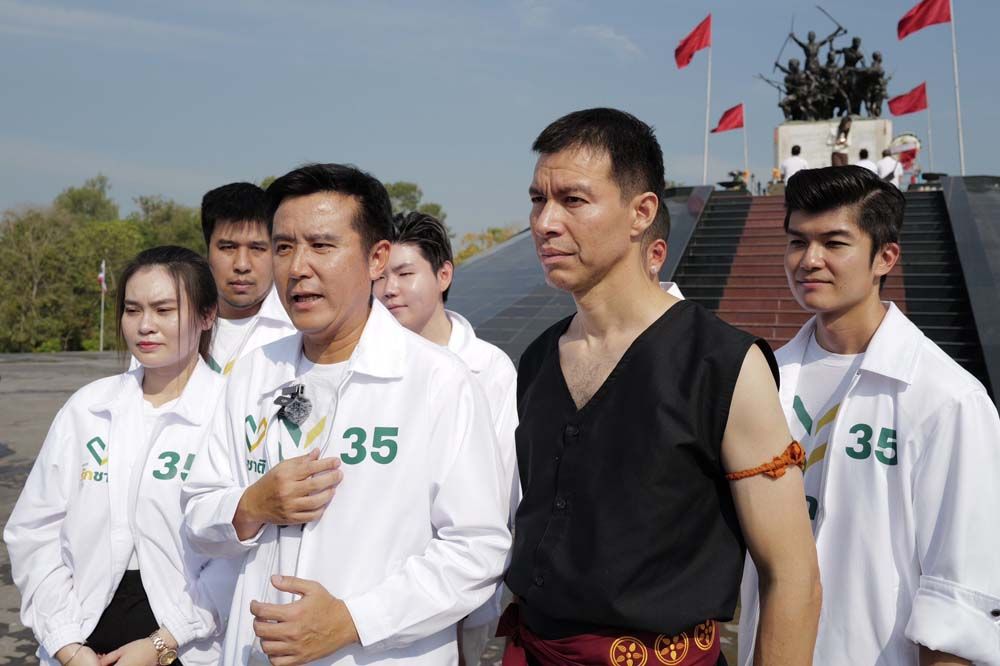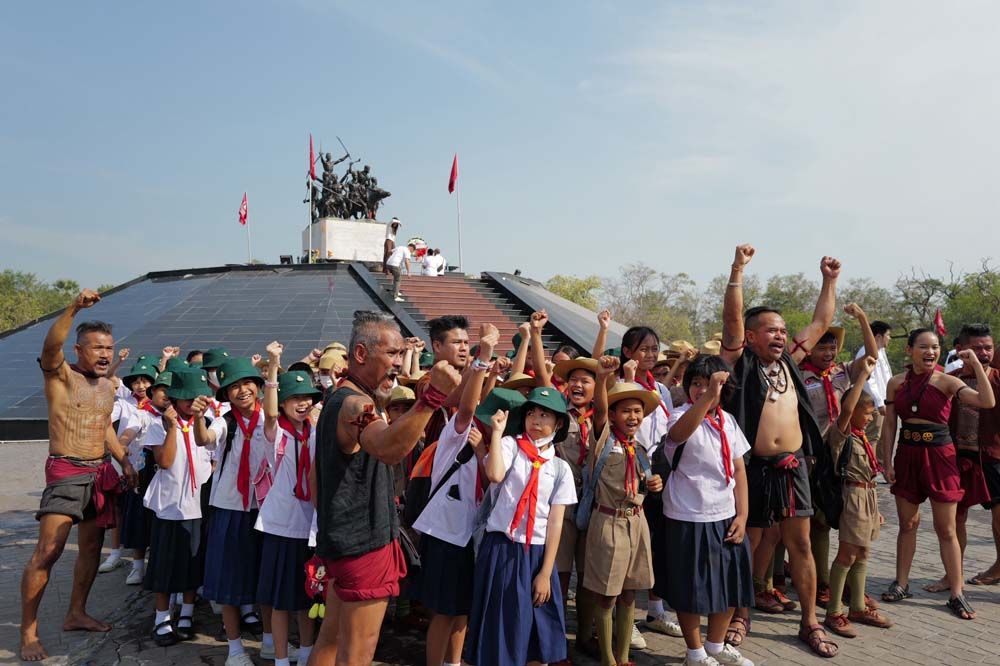 “การปกป้องแผ่นดินไทย ไม่ใช่หน้าที่ของทหารนะครับ แต่เป็นหน้าที่ของคนไทยทุกคน วันนี้เรามาอยู่ที่อนุสาวรีย์วีรชนชาวบ้านบางระจันครับ เป็นบรรพชนที่ต่อสู้ เสียสละเนื้อหนังและชีวิต เพื่อปกป้องแผ่นดินไทย”