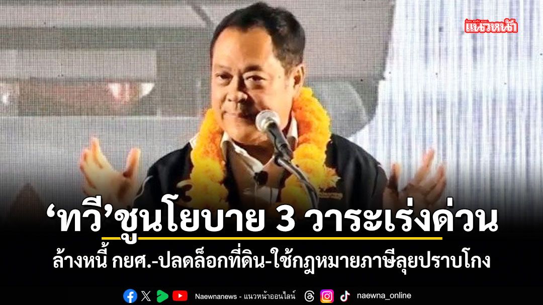 “รวมถึงเดินหน้านโยบาย ยกระดับราคาสินค้าเกษตร เพื่อเพิ่มรายได้ให้เกษตรกรเมื่อเกษตรกรมีที่ดิน มีสิทธิ และมีราคาผลผลิตที่เป็นธรรม เขาจะยืนอยู่ได้ด้วยตัวเอง ไม่ต้องรอความช่วยเหลือจากรัฐตลอดเวลา” พ.ต.อ.ทวี กล่าว