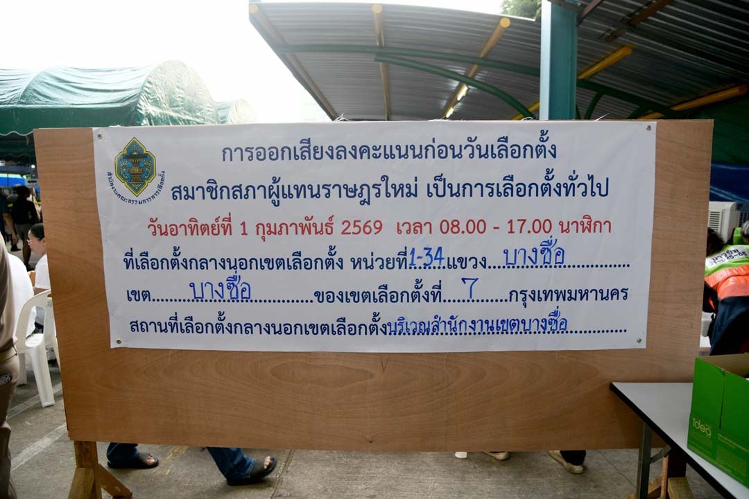 เมื่อวันที่ 1 กุมภาพันธ์ 2569 ผู้สื่อข่าวรายงานบรรยากาศการเลือกตั้งล่วงหน้า ที่สำนักงานเขตคลองสามวา ถนนเลียบคลองสอง และที่สำนักงานเขตบางซื่อ มีประชาชนเดินทางมาใช้สิทธิเลือกตั้งล่วงหน้ากันอย่างคึกคัก โดยมีเจ้าหน้าที่สำนักงานเขต ลูกเสืออาสาสมัคร เจ้าหน้าที่ตำรวจ อำนวยความสะดวกให้กับประชาชนที่ลงทะเบียนในการใช้สิทธิเลือกตั้งล่วงหน้าในครั้งนี้