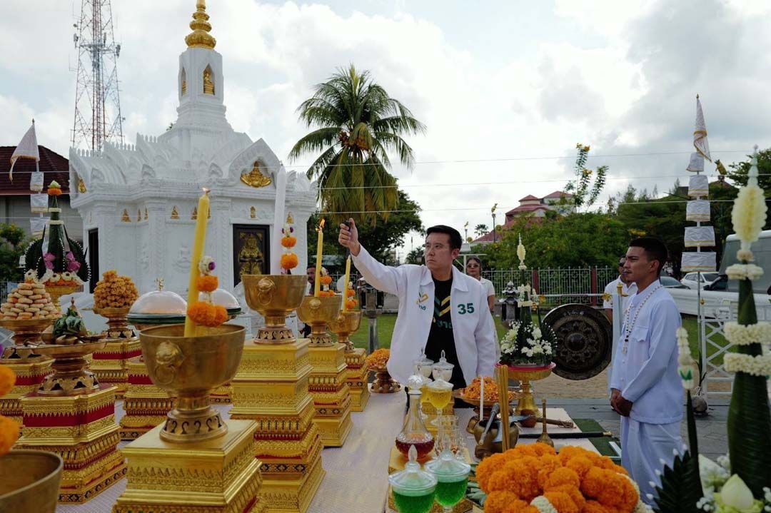 ขณะเดียวกันมีเด็กชายฝาแฝด "น้องไข่ตุ๋น น้องไข่ต้ม" ซึ่งเคยถ่ายรูปกับนายชัยวุฒิ เมื่อครั้งเป็นรัฐมนตรี DE และจำได้ จึงเข้ามาขอถ่ายรูปด้วยอีกครั้ง หลังจากนั้นนายชัยวุฒิ ได้พาทีมพรรครักชาติ เดินทางไปยังศาลหลักเมืองนครศรีธรรมราช ประกอบพิธีบวงสรวง เพื่อเสริมสิริมงคล ให้ราบรื่น ประสบความสำเร็จ
